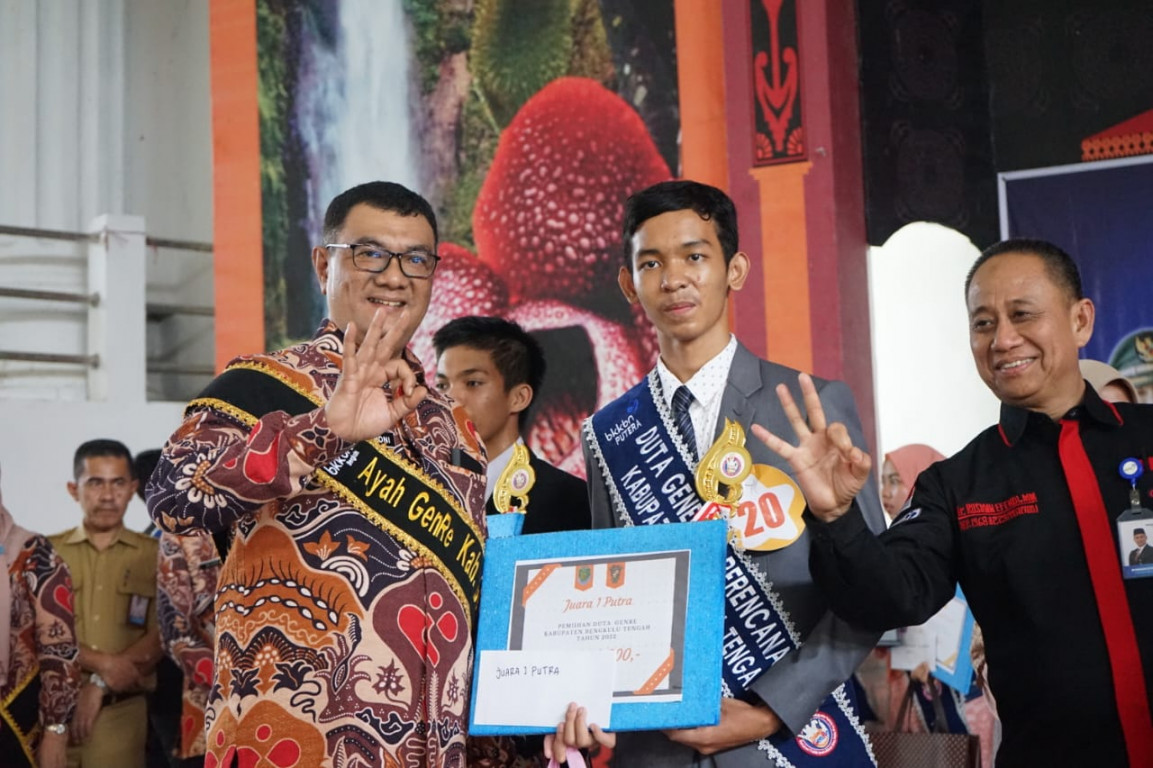 Penjabat Bupati Bengkulu Tengah Dr. Heriyandi Roni,M.Si dinobatkan sebagai Ayah Genre, Ketua Penggerak PkK dr. Dian Augustina Roni dinobatkan sebagai Bunda Genre dan Waka II Evi Susanti,S.IP dinobatkan sebagai Kakak Genre.