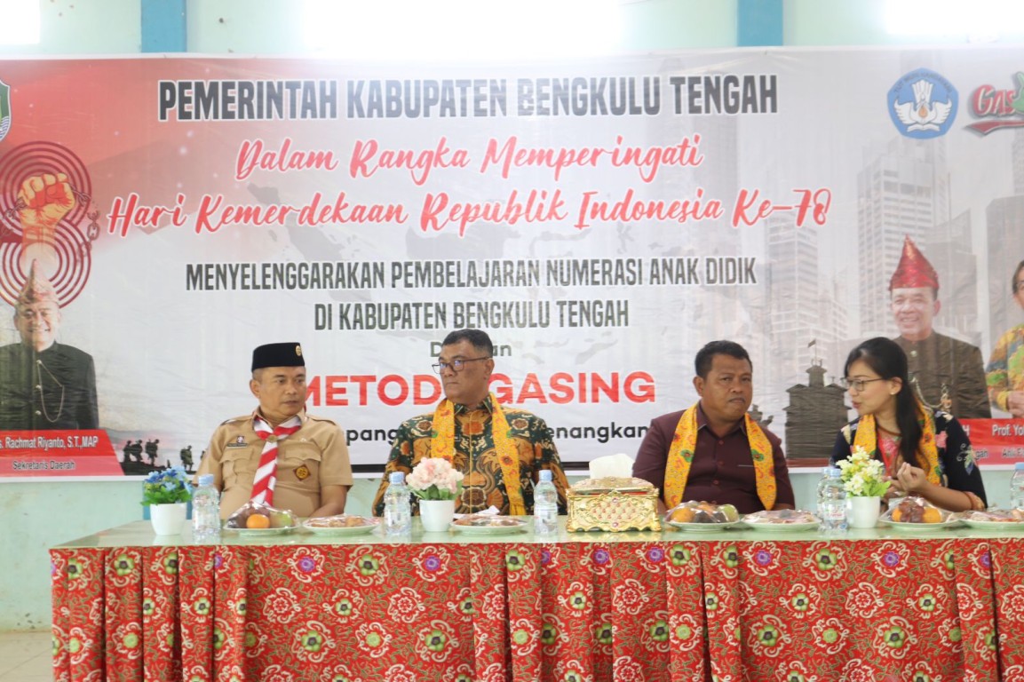 BENGKULU TENGAH- Dalam rangka memperingati hari kemerdekaan ke-78, Republik Indonesia, Pemkab Bengkulu Tengah melalui Dinas Pendidikan dan Kebudayaan melaksanakan beberapa rangkaian kegiatan salah satunya kegiatan Bimbingan Teknis Peningkatan Kemampuan Numerasi dengan Metode Gasing. Acara tersebut berlangsung di Gedung SMPN 01 Kecamatan Pondok Kelapa Selasa 14/07).