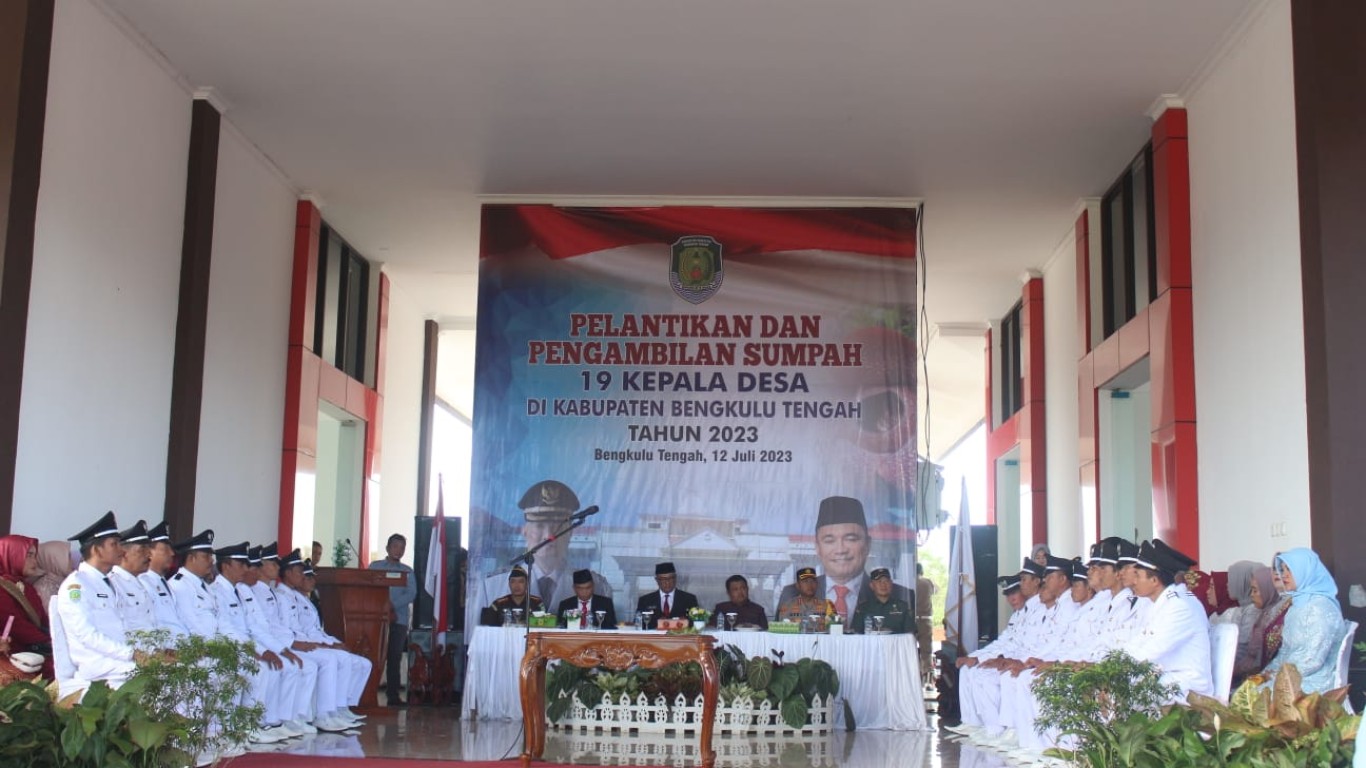 BENGKULU TENGAH- MC Benteng - setelah melalui beberapa proses dalam pemilihan Kepala Desa beberapa waktu lalu, maka Pemkab Bengkulu Tengah melakukan pelantikan kepada 19 Kepala Desa terpilih terdiri dari 7 kecamatan.