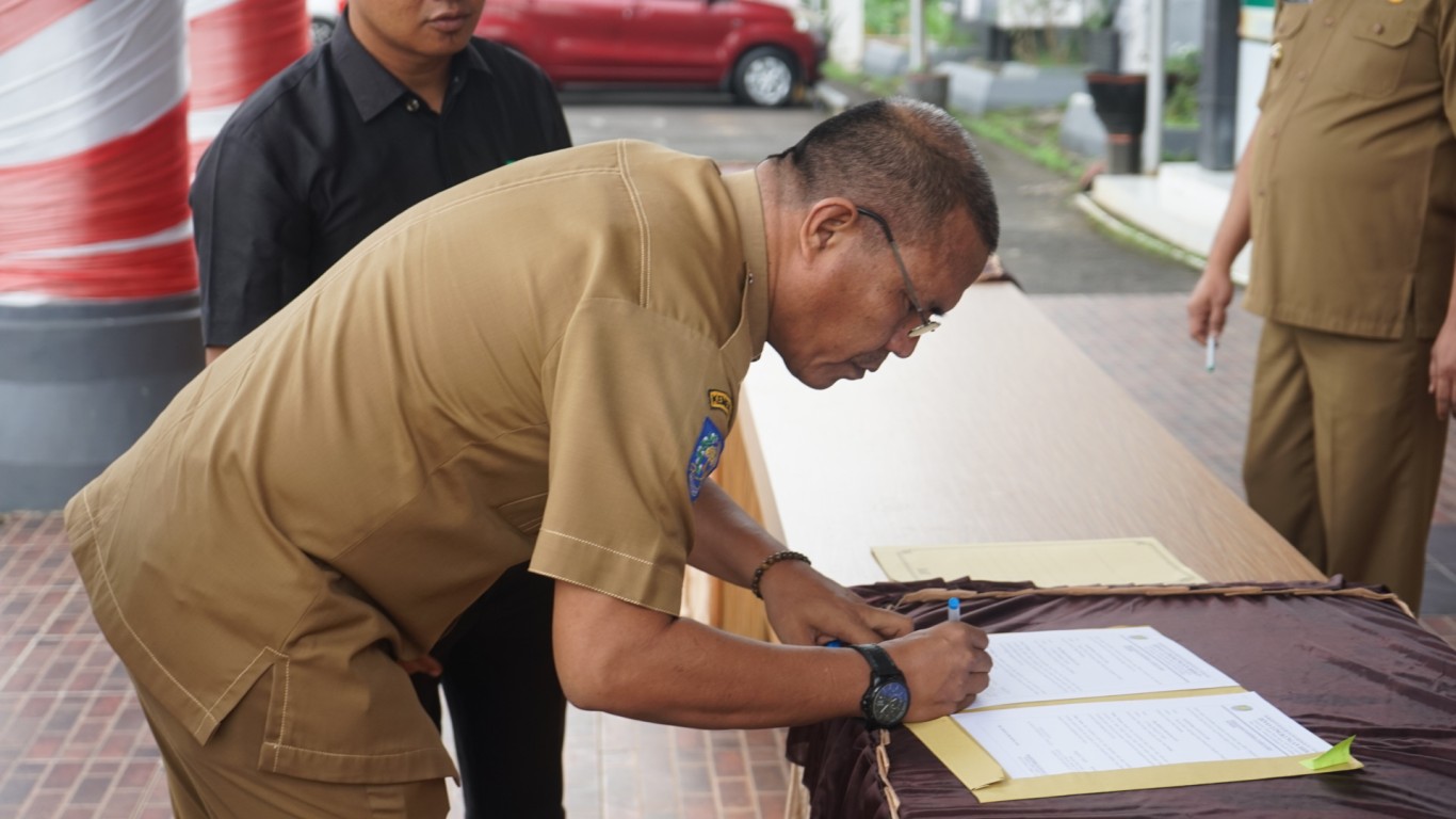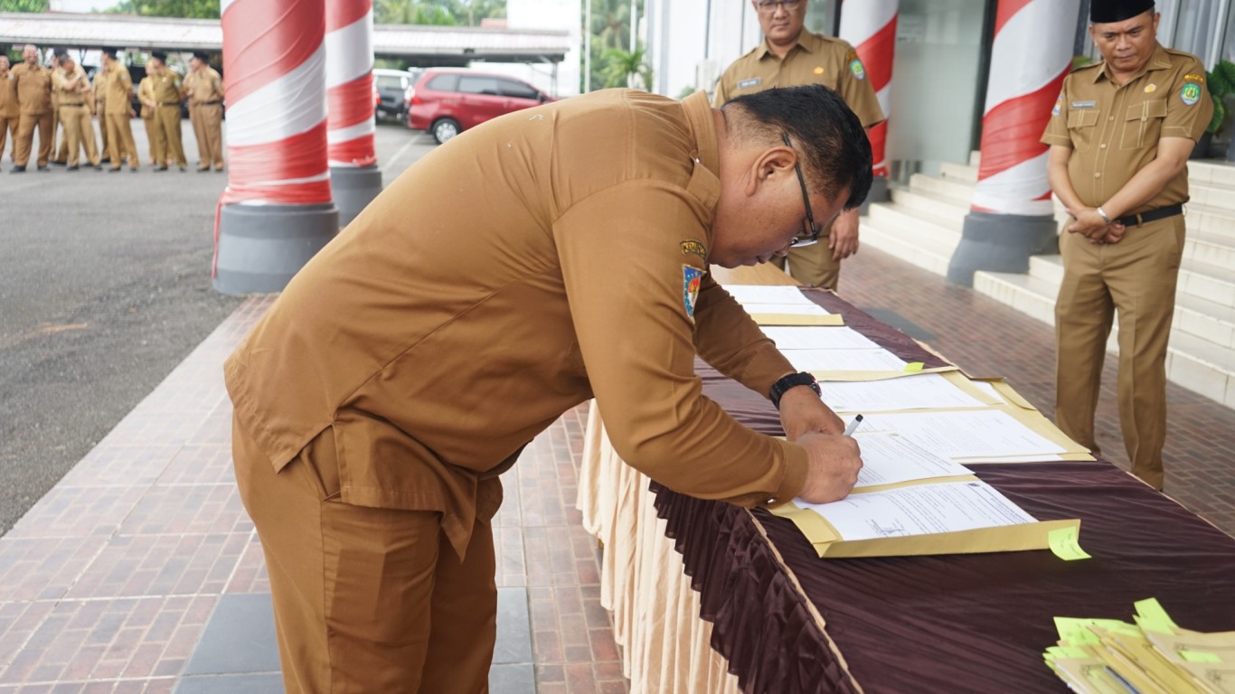 Bengkulu Tengah, MC Benteng - Pemerintah Kabupaten Bengkulu Tengah melaksanakan apel gabungan sekaligus penandatanganan Perjanjian Kinerja (PK) bagi seluruh kepala Organisasi Perangkat Daerah (OPD) dan Camat di Ruang Lingkup Pemerintah Kabupaten Bengkulu Tengah bertempat di Halaman Kantor Bupati. Senin (19/2/2024)