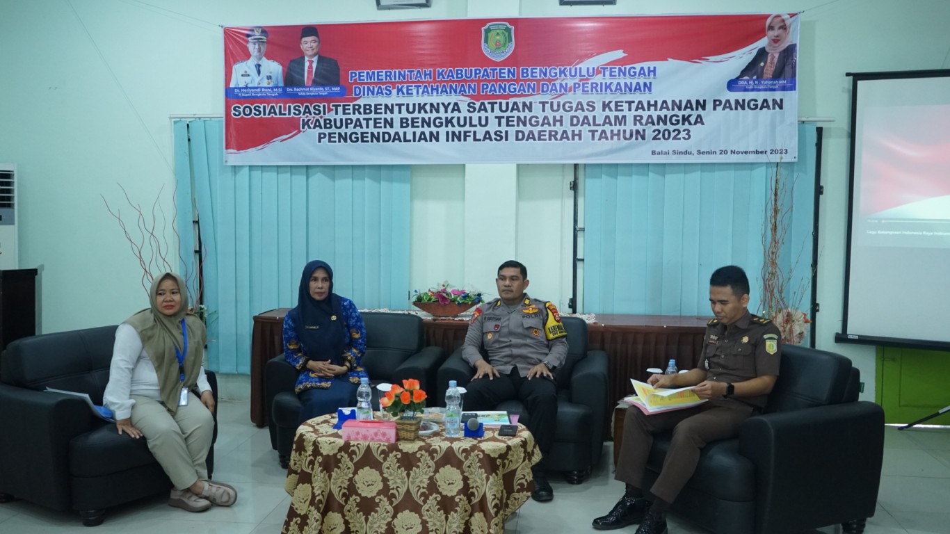 Bengkulu Tengah – Pemerintah Kabupaten (Pemkab) Bengkulu Tengah melalui Dinas Ketahanan Pangan dan Perikanan melaksanakan sosialisasi Satgas Ketahanan Pangan dalam rangka pengendalian inflasi daerah tahun 2023 di Balai Sindu, Senin (20/11/2023).