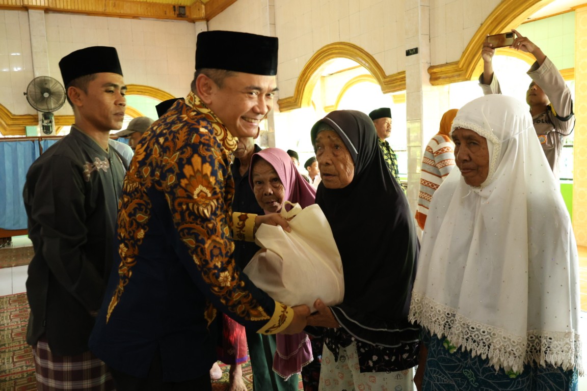 Bengkulu Tengah, MC Benteng - Pemerintah Kabupaten Bengkulu Tengah membagikan 56 paket sembako bagi masyarakat kurang mampu sekaligus melaksanakan sholat Jum'at berjamaah bertempat di Masjid Nurdin Desa Pulau Panggung Kecamatan Talang Empat. Jum'at Siang (5/4/2024)