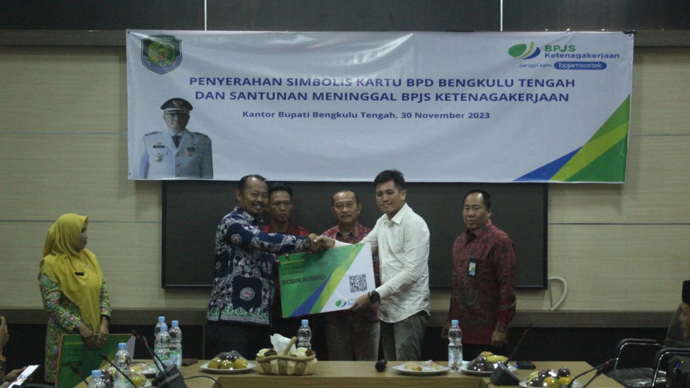 Dijelaskan Kepala BPJS Ketenagakerjaan Cabang Bengkulu M.Nuh bahwa sebanyak 743 kartu yang diserahkan kepada BPD dari seluruh kecamatan di Bengkulu Tengah, selain itu memberikan santunan meninggal kepada PTT dari Kecamatan Merigi Kelindang.