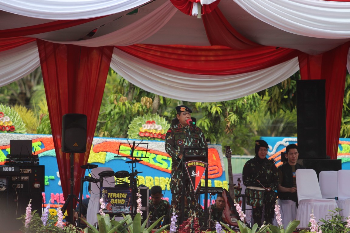 “Selamat hari ulang tahun brimob ke 79, mudah-mudahan di tahun yang sudah dewasa ini bisa memberikan pelayanan terbaik bagi bangsa, semoga brimob bisa menjadi pasukan kebangaan Polri dan bangsa Indonesia, saya juga sampaikan salam hormat kepada seluruh anggota brimob, atas jasa dan pengabdian selama ini dalam memberikan pelayanan kepada masyarakat, tetaplah menjadi anggota yang mengabdi pada masyayarakat, menjadi teladan bagi masayrakat, menjadi anggota yang berkewajiban menjaga tertib pribadi dan bangsa”