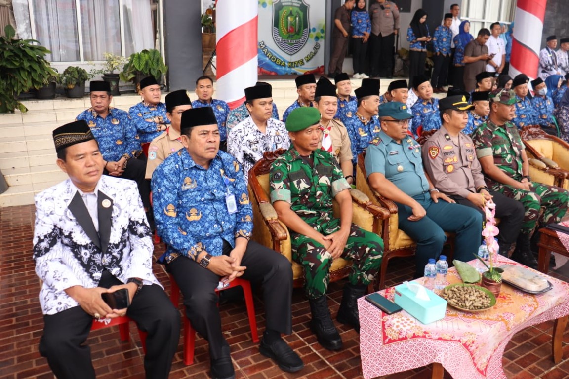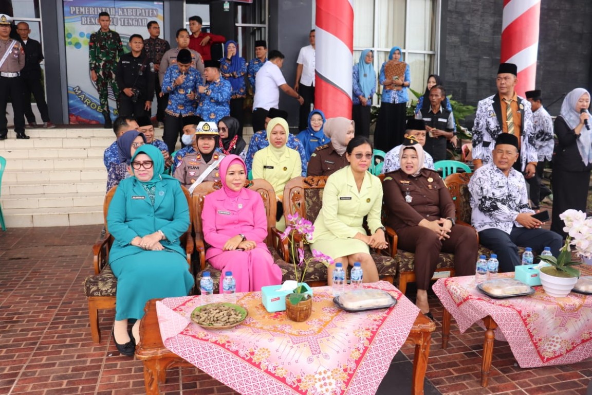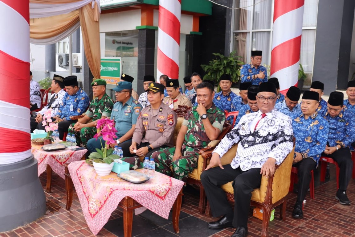 Bertindak sebagai inspektur upacara Pj Bupati Bengkulu Tengah Dr.Heriyandi Roni, M.Si., hadir langsung Unsur Forkopimda Kabupaten Bengkulu Tengah, Pj Sekretaris Daerah Bengkulu Tengah Drs. Hendri Donal, S.H.,M.H., Pj Ketua TP PKK Bengkulu Tengah dr. Dian AR Heri Roni, Asisten dan Staf Ahli Bupati, Kepala OPD, Ketua PGRI Bengkulu Tengah, para ASN dan guru dilingkup Pemerintahan Kabupaten Bengkulu Tengah serta undangan lainnya.
