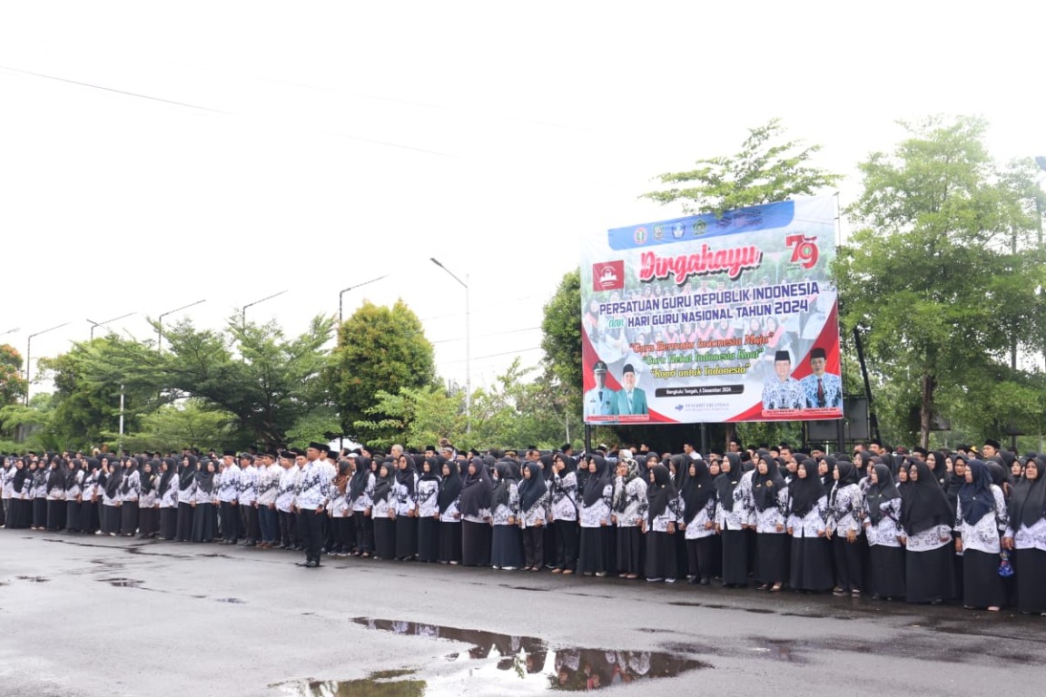 Bengkulu Tengah, MC Benteng – Pemerintah Kabupaten Bengkulu Tengah melalui Dinas Pendidikan dan Kebudayaan Kabupaten Bengkulu Tengah melaksanakan Upacara Peringatan Hari Ulang Tahun Ke-79 PGRI, Hari Guru Nasional Tahun 2024 dan Hari Ulang Tahun Ke-53 KORPRI di Kantor Bupati Bengkulu Tengah, Rabu (04/12/2024).