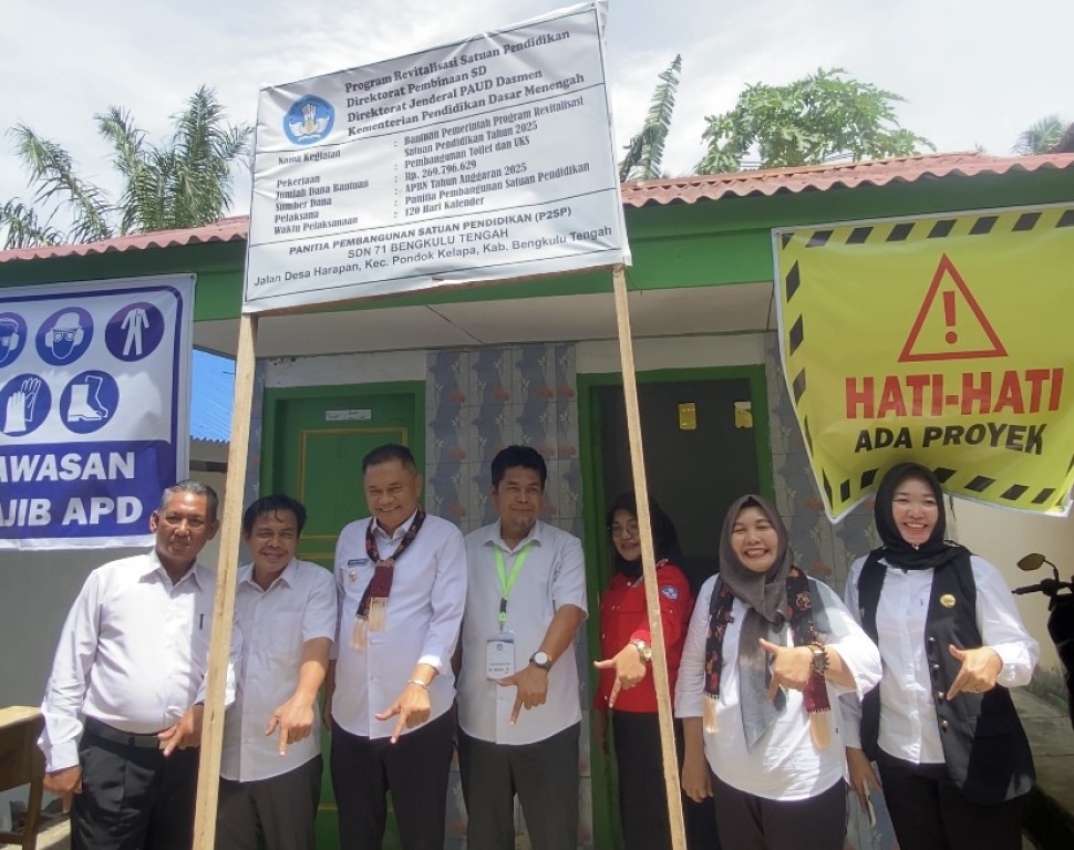 Setelah melakukan peninjauan, Bupati Bengkulu Tengah, Drs. Rachmat Riyanto, S.T., M.AP., beserta jajaran mengecek SDN 71 Pondok Kelapa yang menjadi salah satu sekolah penerima program revitalisasi dari Direktorat SD Kemendikbud untuk pembangunan UKS dan toilet sekolah.(MC/AA)