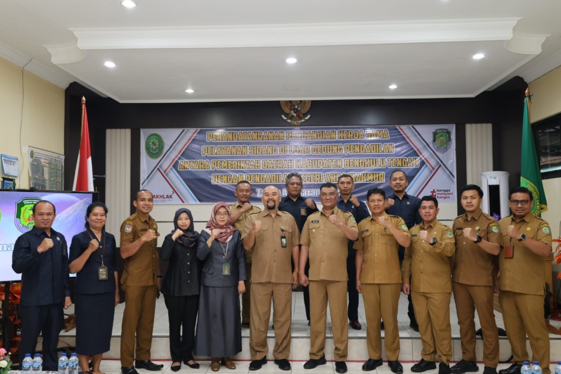 "Ini merupakan pertama kalinya kita melakukan penandatanganan kerja sama sebelumnya beberapa kali kita sudah melakukan persidangan di wilayah Bengkulu Tengah dan sekarang ada peraturan baru yang mengharuskan adanya perjanjian kerja sama ini, dengan adanya kesepakatan ini semoga menjadi awalan baik untuk semakin memperkuat sinergitas antara Pengadilan Negeri Arga Makmur dengan Pemerintah Kabupaten Bengkulu Tengah dalam upaya memberikan pelayanan dan penegakan keadilan"