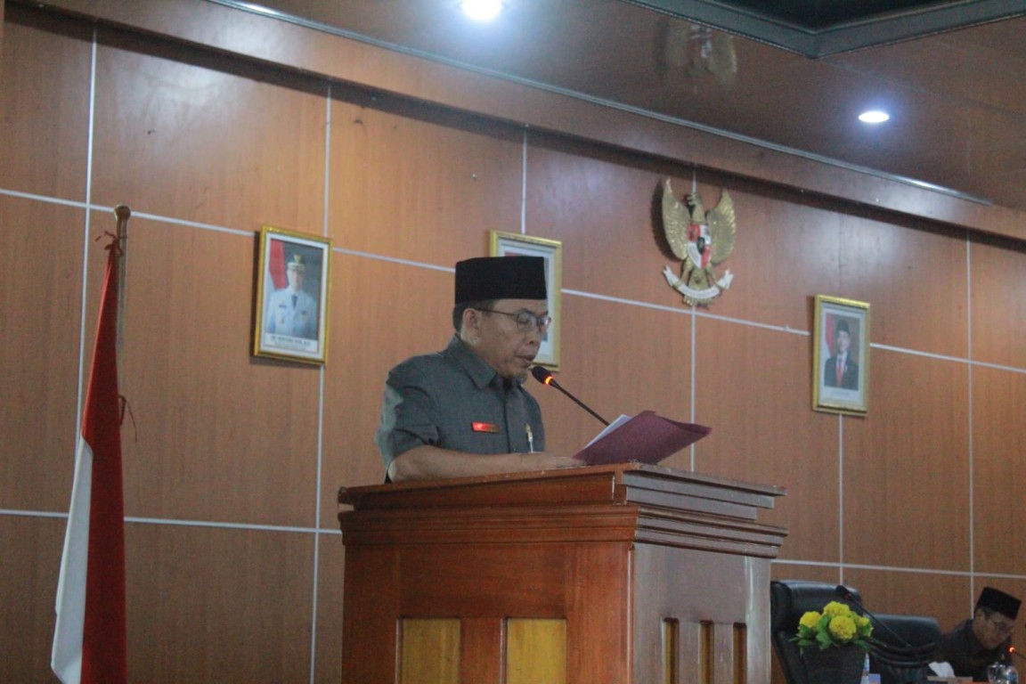 Melalui rapat paripurna ini Asisten Adm. Umum H. Elyandes Kori, S.E.,M.Pd menyampaikan poin – poin penting evaluasi pandangan umum dari masing-masing fraksi sebelumnya.