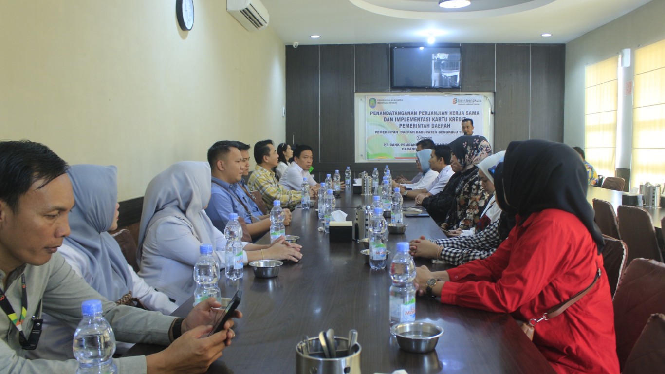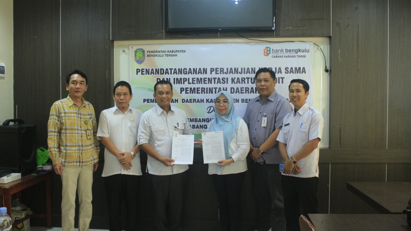 Bengkulu Tengah, MC Benteng - Pemerintah Kabupaten (Pemkab) Bengkulu Tengah melalui Badan Keuangan Daerah (BKD) melaksanakan penandatanganan Perjanjian Kerja Sama (PKS) Kartu Kredit Pemerintah Daerah (KKPD) dengan Bank Bengkulu cabang Karang Tinggi di Ruang VIP Rumah Makan Sederhana KM 6,5 Bengkulu, Rabu (31/01/2024).