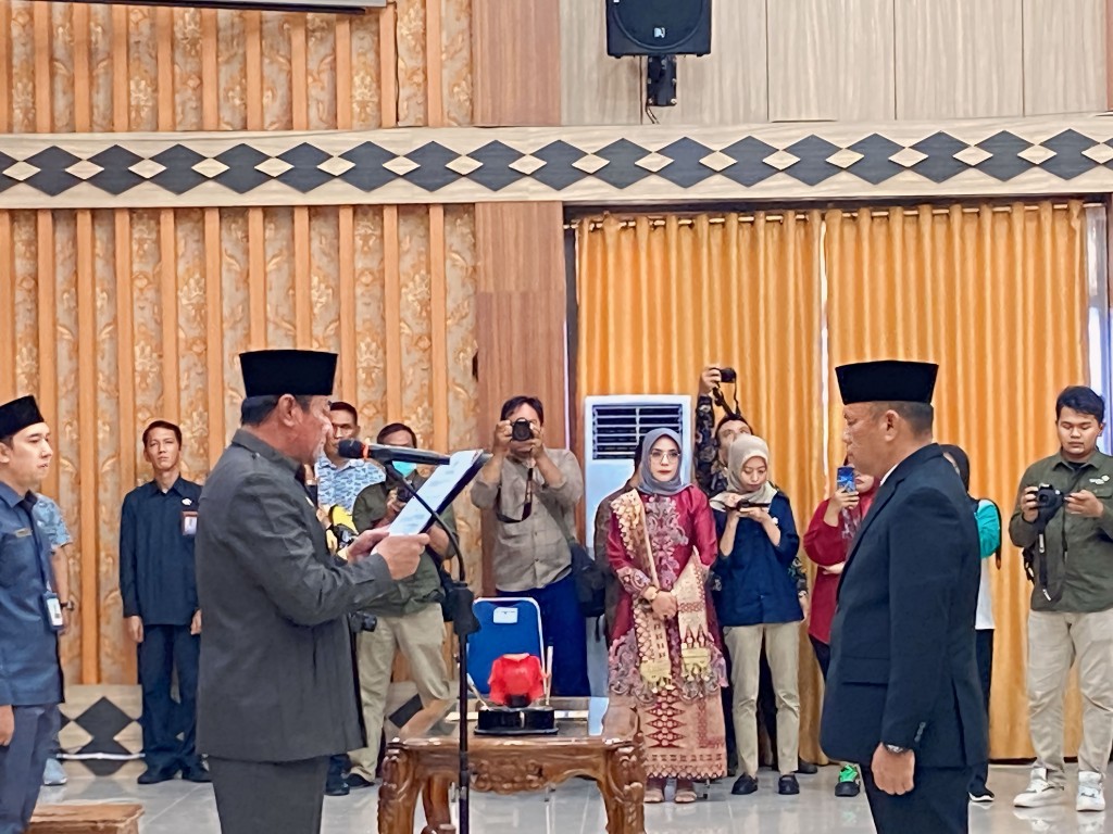 Wakil Gubernur Bengkulu Dr. H. Rosjonsyah Syahili Sibarani, S. Sos, M. Si., mengkukuhkan secara langsung Kepala Perwakilan BKKBN Provinsi Bengkulu Zamhari, S.H., M.H., Tampak hadir Deputi Bidang KSPK BKKBN RI Nopian Andusti, Jajaran Forkopimda Provinsi, Bupati/Walikota Se-Provinsi Bengkulu dan undangan lainnya.