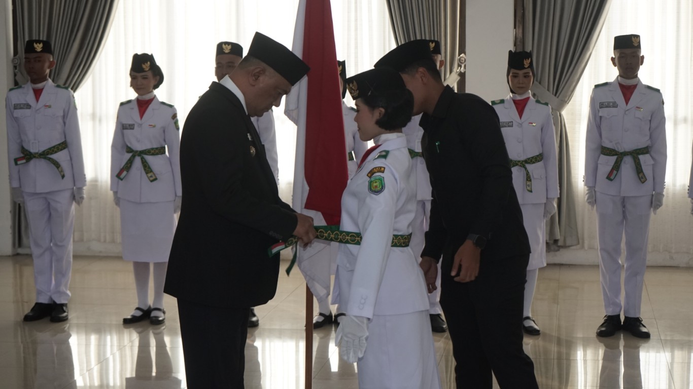 Bengkulu Tengah, MC Benteng - Penjabat Bupati Bengkulu Tengah Dr. Heriyandi Roni, M.Si., resmi melakukan pengukuhan terhadap 32 orang Pasukan Pengibar Bendera Pusaka (Paskibraka) tahun 2024 yang berlangsung di Pendopo Bukit Kandis. Kamis Sore (15/8/2024)