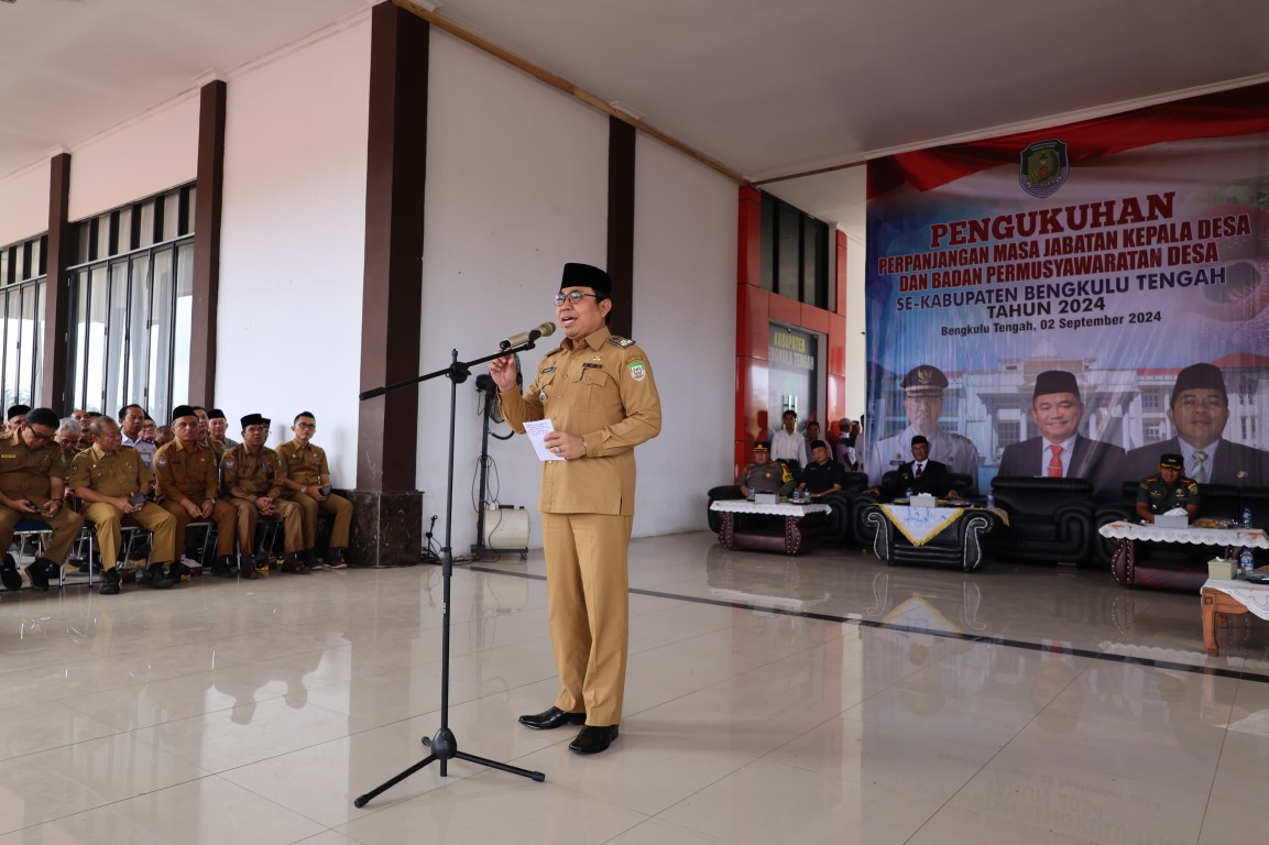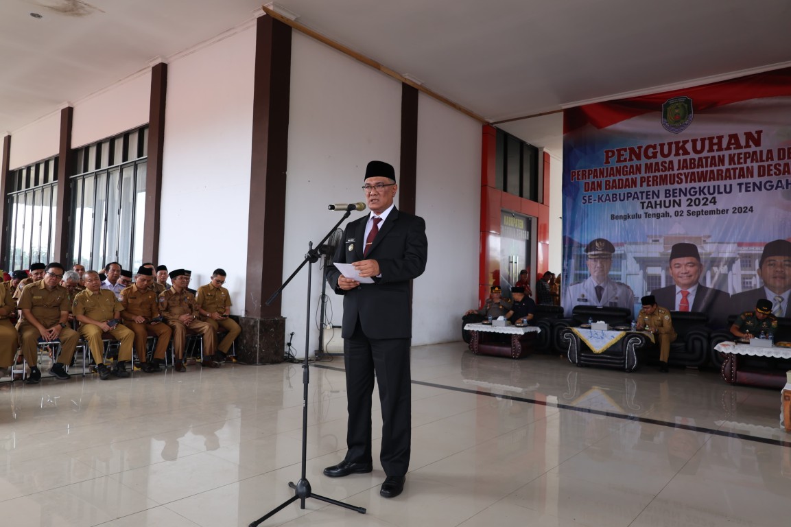 Heriyandi Roni selaku Pj Bupati Bengkulu Tengah mengukuhkan 138 Kepala Desa dan 746 anggota BPD di Kabupaten Bengkulu Tengah.