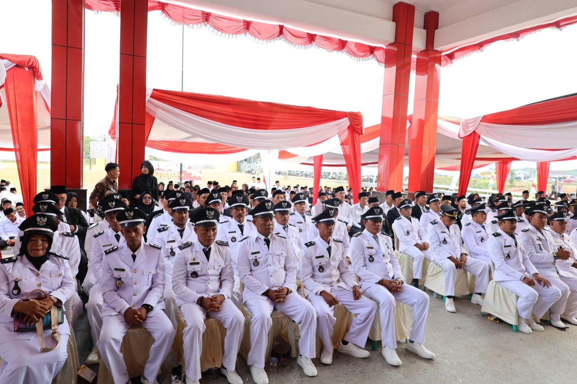 Hadir langsung Sekretaris Daerah Drs. Rachmat Riyanto, S.T., M.AP, Forkopimda Kabupaten Bengkulu Tengah, Asisten Pemerintahan dan Kesra Provinsi Bengkulu Drs. Khairil Anwar, M.Si, Perwakilan Dinas PMD Provinsi Bengkulu, Para Asisten, Kepala OPD Pemkab Bengkulu Tengah, Camat, Kades, dan BPD se-Kabupaten Bengkuku Tengah serta undangan lainnya.