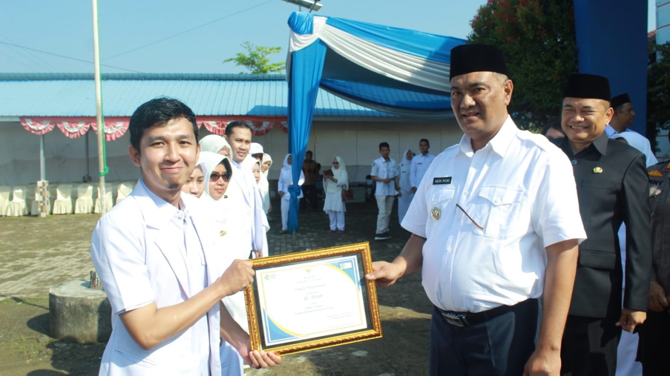 Dalam rangkaian upacara HKN tersebut dirangkaikan dengan penerimaan penghargaan Aparatur Sipil Negara berprestasi di Lingkungan Dinas Kesehatan Kabupaten Bengkulu Tengah.