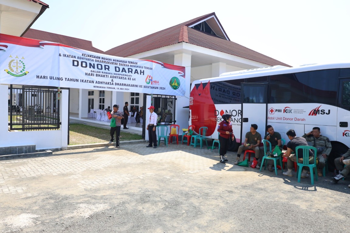 Kegiatan donor darah diikuti dengan antusias oleh pegawai kejari Bengkulu Tengah, perwakilan dari OPD beserta staf di ruang lingkup Pemerintah Kabupaten Bengkulu Tengah.