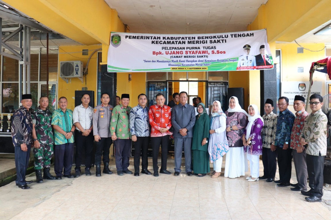Bengkulu Tengah, MC Benteng - Sekretaris Daerah Bengkulu Tengah Drs. Rachmat Riyanto Yo, S.T., M.AP., menghadiri acara pisah sambut atas purna tugasnya Camat Merigi Sakti Ujang Sapawi, S.Sos., bertempat di Kantor Kecamatan Merigi Sakti Bengkulu Tengah. Kamis (6/9/2024)
