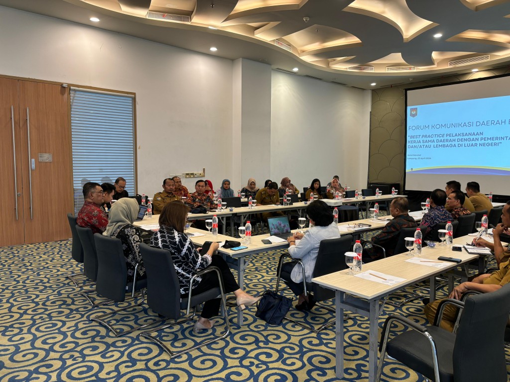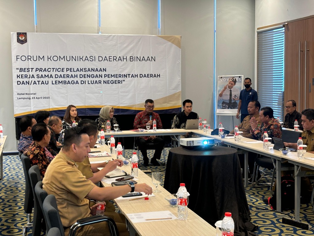 Forum Komunikasi Daerah Binaan ini memiliki tema Best Practice Pelaksanaan Kerja Sama Daerah dengan Pemerintah Daerah dan/atau lembaga di Luar Negeri.