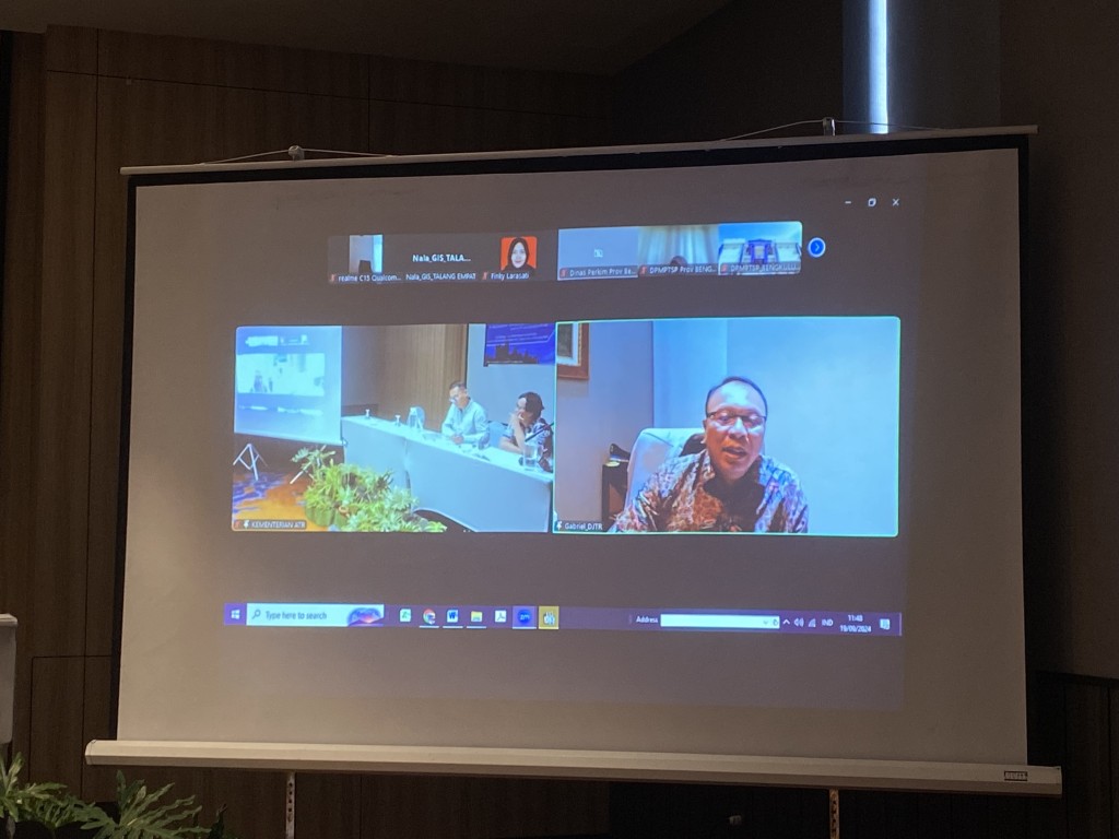 Acara dilanjutkan dengan pemaparan analisa, tujuan, konsep rencana struktur dan rencana pola ruang oleh Tim Penyusun RDTR WP Kecamatan Talang Empat Marthin Oktavianus Nggili, ST., M.PWK., dan diskusi bersama Pejabat Fungsional Penata Ruang Ahli Utama Kementerian ATR/BPN Direktur Jenderal Tata Ruang Ir. Gabriel Triwibawa, M.Eng.Sc.(MC/AA)