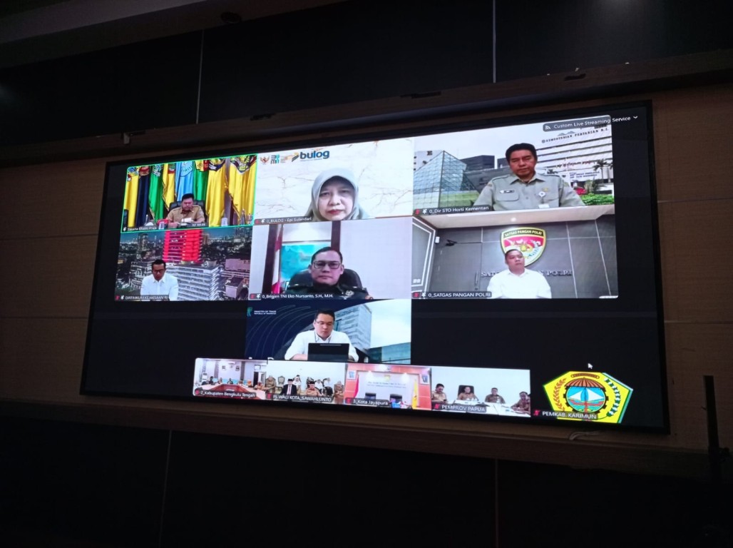 Bengkulu Tengah, MC Benteng – Pj Bupati Bengkulu Tengah Dr.Heriyandi Roni, M.Si didampingi Sekretaris Daerah Drs. Rachmat Riyanto, S.T., M.AP, Asisten Administrasi Umum H.Elyandes Kori,S.E.,M.Si., Staf Ahli Bidang Ekonomi, Keuangan dan Pembangunan Sugeng Oswari,S.Kom., M.Si, bersama Tim Pengendalian Inflasi Daerah (TPID) Kabupaten Bengkulu Tengah mengikuti Rapat Koordinasi (Rakor) mingguan bersama Kementerian Dalam Negeri (Kemendagri) Republik Indonesia melalui zoom di Ruang Rapat Bupati (RRB), Senin (11/08/2024).