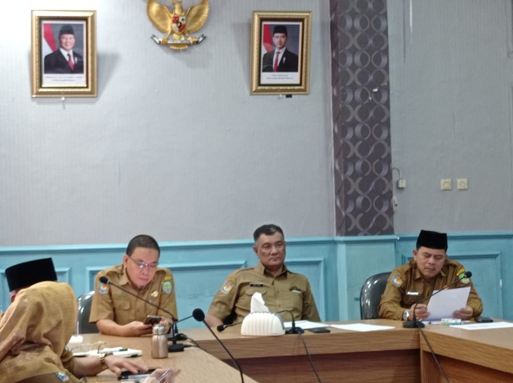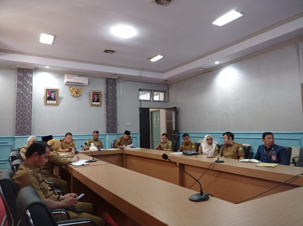 Bengkulu Tengah, MC Benteng – Pj Bupati Bengkulu Tengah Dr. Heriyandi Roni, M.Si didampingi Pj Sekretaris Daerah Drs. Hendri Donal, M.H., Staf Ahli Bidang Administrasi Umum H.Elyandes Kori, M.Si., Kepala OPD terkait bersama Tim Pengendalian Inflasi Daerah (TPID) Kabupaten Bengkulu Tengah mengikuti Rapat Koordinasi (Rakor) mingguan bersama Kementerian Dalam Negeri (Kemendagri) Republik Indonesia melalui zoom di Ruang Rapat Bupati (RRB), Senin (13/01/2025).