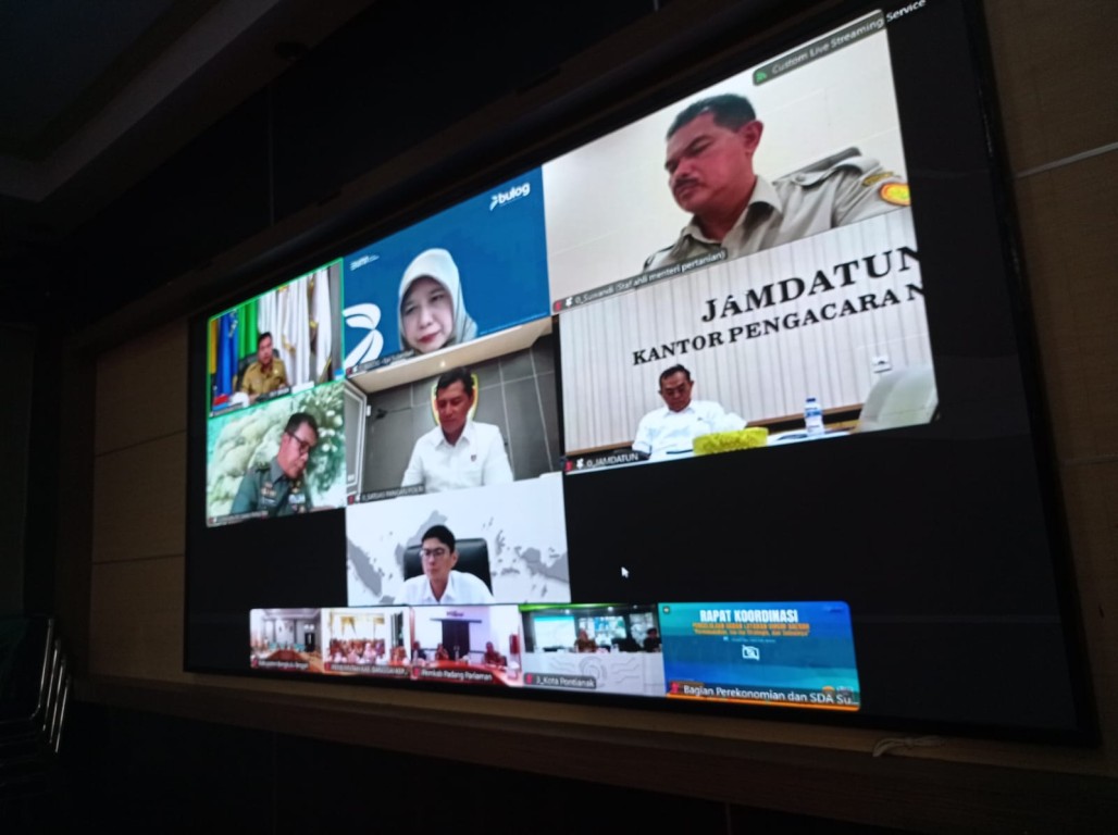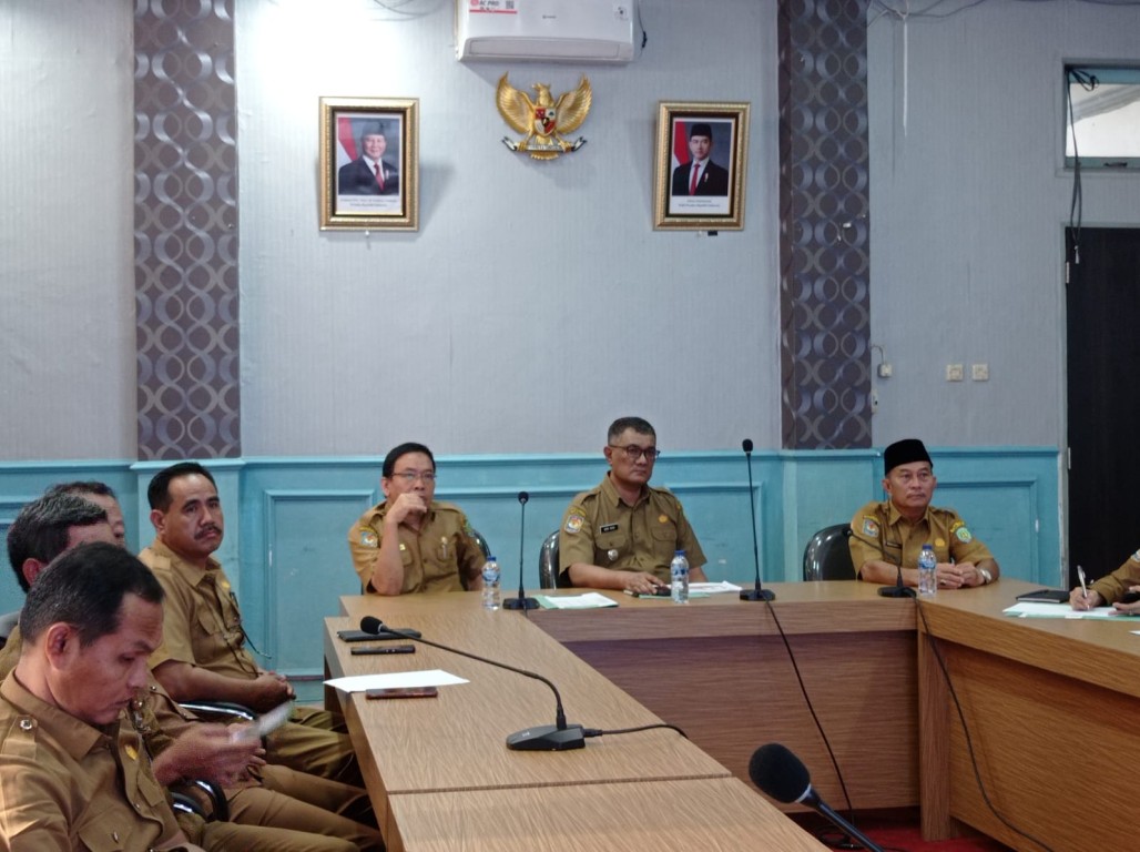 Bengkulu Tengah, MC Benteng – Pj Bupati Bengkulu Tengah Dr. Heriyandi Roni, M.Si didampingi Asisten Bidang Administrasi Umum H.Elyandes Kori, S.E., M.Si., Staf Ahli Bidang Kemasyarakatan dan SDM Gunawan R, S.E , M.M., bersama Tim Pengendalian Inflasi Daerah (TPID) Kabupaten Bengkulu Tengah mengikuti Rapat Koordinasi (Rakor) mingguan bersama Kementerian Dalam Negeri (Kemendagri) Republik Indonesia melalui zoom di Ruang Rapat Bupati (RRB), Senin (23/12/2024).