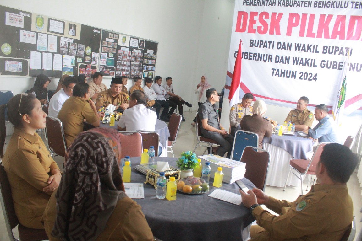 Bengkulu Tengah, MC Benteng - Pemerintah Kabupaten Bengkulu Tengah melalui Badan Kesatuan Bangsa dan Politik (Kesbangpol) Bengkulu Tengah menggelar Rapat Forum Koordinasi Pimpinan Daerah (Forkopimda) tentang evaluasi akhir Pemilihan Kepala Daerah (PILKADA) tahun 2024, bertempat di Desk Pilkada di Pendopo Bukit Kandis Kabupaten Bengkulu Tengah, Senin (23/12/2024).