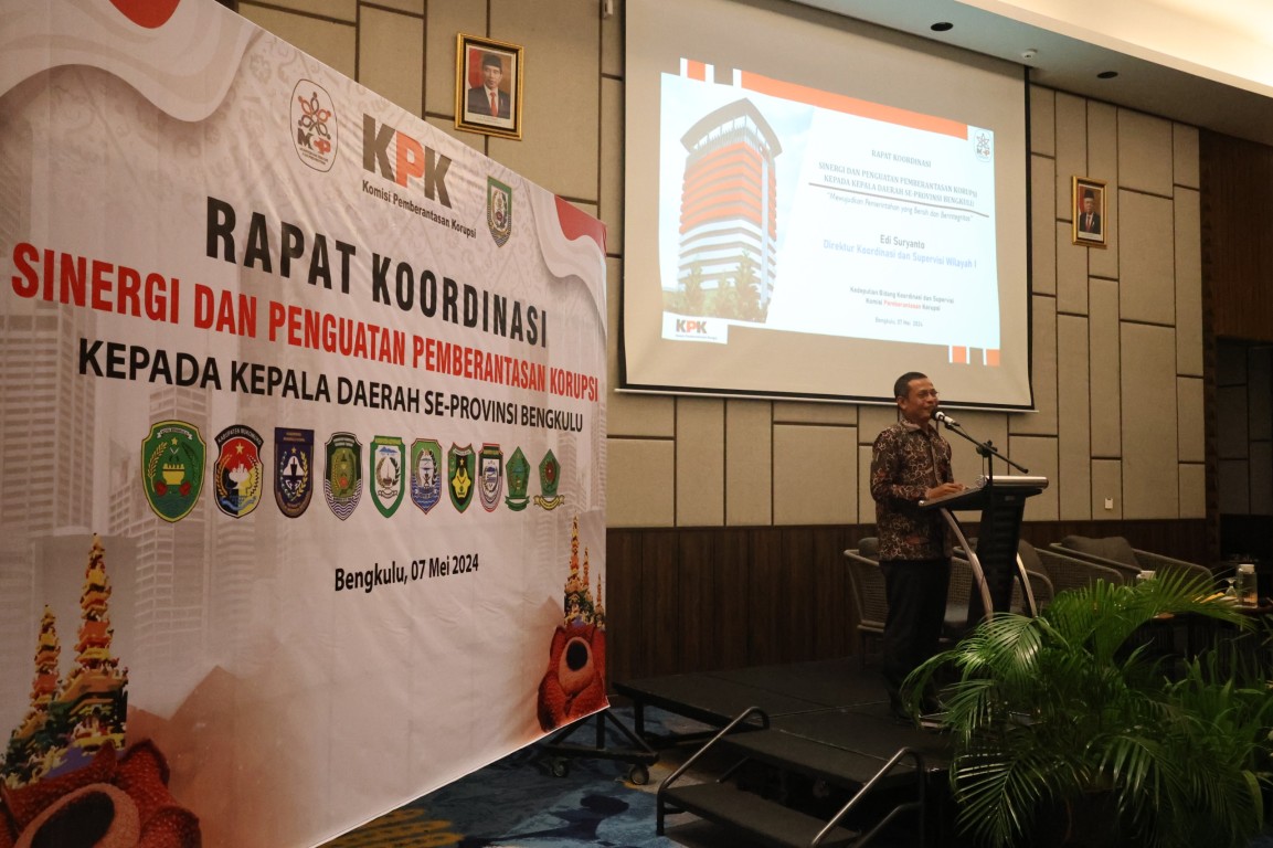 Direktur Koordinasi dan Supervisi (Korsup) Wilayah 1 KPK Edi Suryanto pada sambutannya menjelaskan tentang nilai MCP di Pemerintah Daerah Provinsi Bengkulu maupun Kabupaten/Kota. Selain itu juga menjelaskan bagaimana upaya Pemerintah Daerah dalam mencegah korupsi di Ruang Lingkup Pemerintahan di daerahnya masing-masing.
