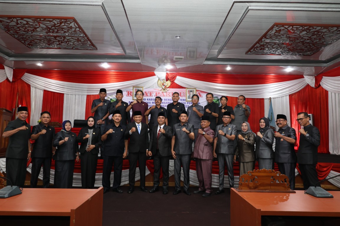 “Kami atas nama Pimpinan beserta seluruh anggota DPRD dan masyarakat Kabupaten Bengkulu Tengah menyambut hangat dan mengucapkan selamat kepada Bupati dan Wakil Bupati Bengkulu Tengah periode 2025-2030, dengan harapan kiranya saudara-saudara dapat bersama dengan DPRD Bengkulu Tengah membangun kemitraan dalam mengemban tugas yang mulia ini dengan sebaik-baiknya dalam upaya meningkatkan pelayanan serta pengabdian kepada masyarakat Bengkulu Tengah dengan melanjutkan program-program penyelenggaraan pemerintahan, pelaksanaan pembangunan dan pemberdayaan masyarakat, semoga dalam mengemban tugas dan tanggung jawabnya memimpin Kabupaten Bengkulu Tengah selalu mendapat ridho dan perlindungan Allah Swt”