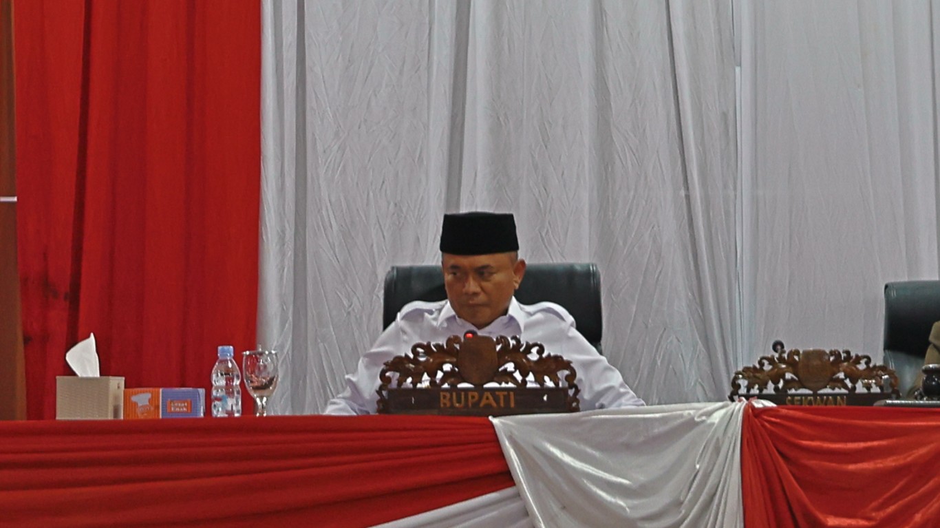 Bengkulu Tengah, MC Benteng - Bupati Bengkulu Tengah Drs. Rachmat Riyanto,S.T.,M.AP., didampingi Pj Sekretaris Daerah Drs. Hendri Donal,S.H.,M.H., menghadiri rapat paripurna dengan agenda penandatanganan nota kesepakatan terhadap Kebijakan Umum Perubahan Anggaran (KUPA) dan Perubahan Prioritas Plafon Anggaran Sementara (P-PPAS) tahun anggaran 2025 di ruang Gunung Bungkuk DPRD Bengkulu Tengah. Kamis (14/08/2025)