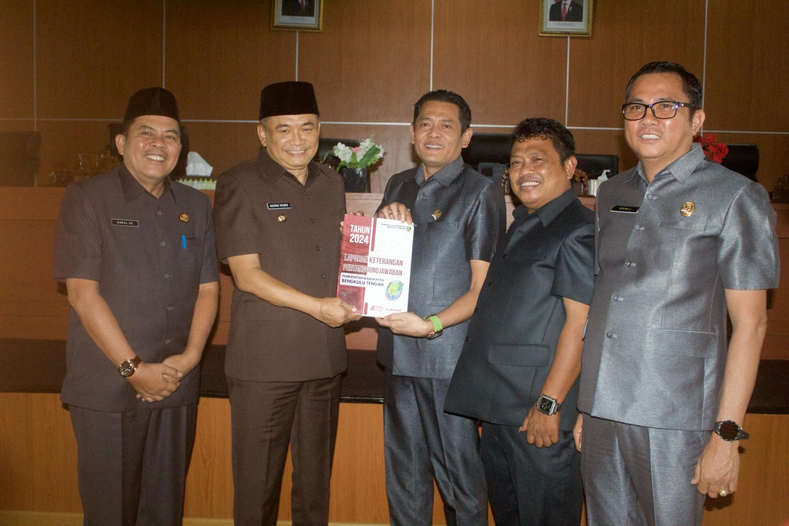 Bupati Bengkulu Tengah Drs. Rachmat Riyanto, dalam sambutannya menyampaikan Laporan Keterangan Pertanggungjawaban (LKPJ) tahun anggaran 2024.
