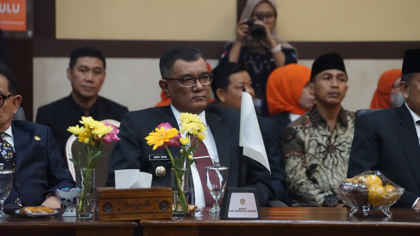Bengkulu, MC Benteng - Penjabat Bupati Bengkulu Tengah Dr. Heriyandi Roni, M.Si., menghadiri Rapat Umum Pemegang Saham (RUPS) tahun buku 2023 dan lainnya sekaligus juga pelantikan Direktur Utama dan Direktur Bisnis Perusahaan Terbatas (PT) Bank Pembangunan Daerah (BPD) Bengkulu bertempat di Aula H. Mucthar Azhaeri Graha Bank Bengkulu Lantai 7. Rabu (6/3/2024)