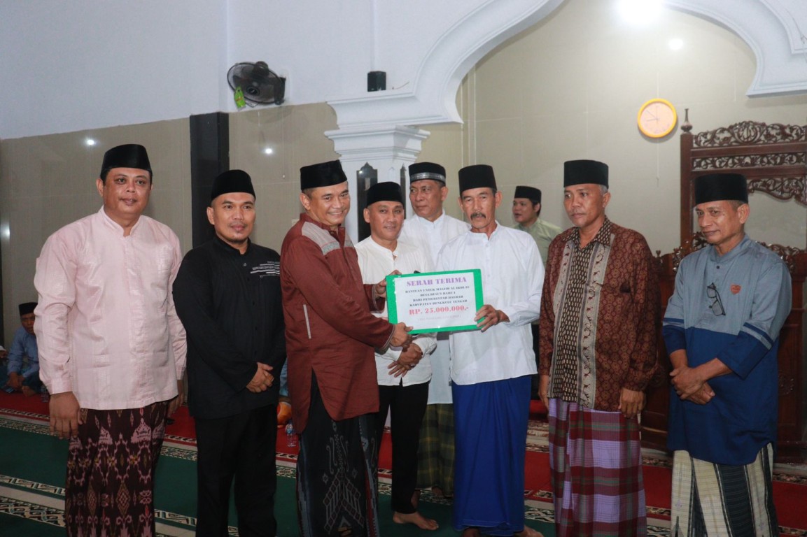 Setelah Sholat Tarawih, Pemerintah Kabupaten Bengkulu Tengah menyerahankan dana Hibah untuk pembangunan Masjid Al-Ikhlas Desa Dusun Baru I Kecamatan Pondok Kubang Kabupten Bengkulu Tengah sebesar Rp. 25.000.000 dan sembako sebanyak 20 paket.