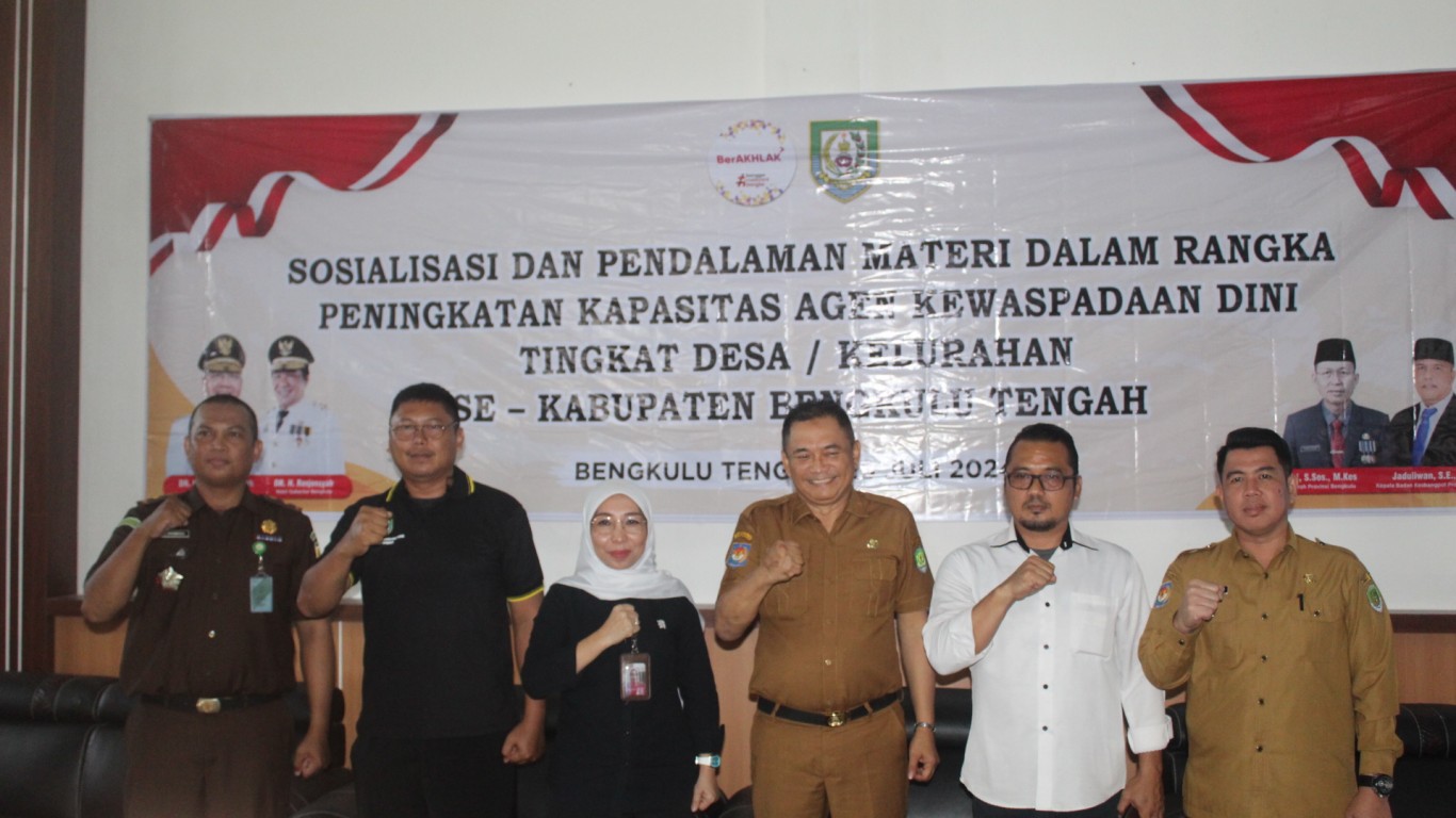 “Dalam kesempatan ini saya menyambut baik dan memberikan apresiasi dengan diselenggarakannya sosialisasi dan pendalaman materi dalam rangka peningkatan kapasitas agen kewaspadaan dini tingkat Desa/Kelurahan se-Kabupaten Bengkulu Tengah Tahun 2024, yang mana agen kewaspadaan dini ini telah dibentuk pada tanggal 14 Desember Tahun 2023 di Aula Kecamatan Talang Empat Kabupaten Bengkulu Tengah.” Ujarnya.