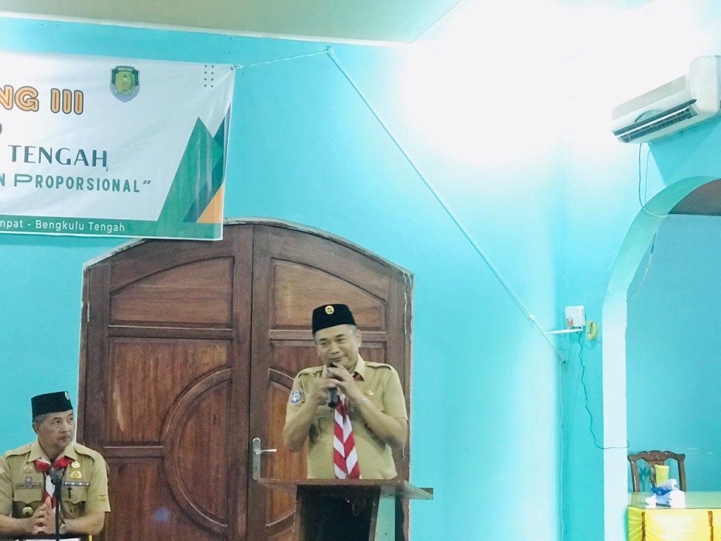 Bengkulu Tengah, MC Benteng - Sekretaris Daerah Bengkulu Tengah Drs. Rachmat Riyanto, S.T., M.AP., terpilih menjadi Ketua Kwartir Cabang (Kwarcab) 0710 Bengkulu Tengah periode 2024-2028 yang digelar pada Musyawarah Cabang ke III Gerakan Pramuka bertempat di Aula R.M Riung Gunung. Kamis (21/12/2023)