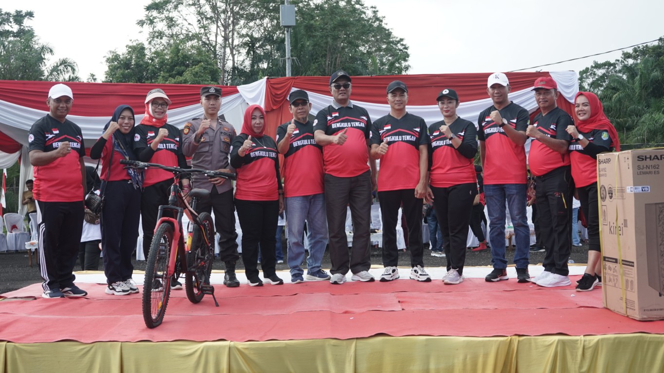 Bengkulu Tengah, MC Benteng - Pemerintah Daerah Bengkulu Tengah melalui Dinas Pemuda dan Olahraga megadakan senam massal berhadiah (doorprize) dalam rangka memperingati Hari Ulang Tahun (HUT) ke 16 Kabupaten Bengkulu Tengah bertempat di Lapangan Gunung Bungkuk Kecamatan Karang Tinggi. Jum'at (21/6/2024)