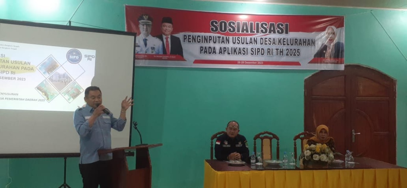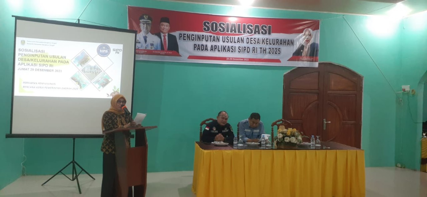 Bengkulu Tengah, MC Benteng - Pemerintah Kabupaten Bengkulu Tengah melalui Badan Perencanaan Pembangunan Daerah (Bappeda) menggelar Sosialisasi Penginputan Usulan Desa dan Kelurahan pada Aplikasi Sistem Informasi Pembangunan Daerah (SIPD) RI tahun 2025 yang berlangsung di Riung Gunung Resto Kecamatan Talang Empat. Jumat (29/12/2023)