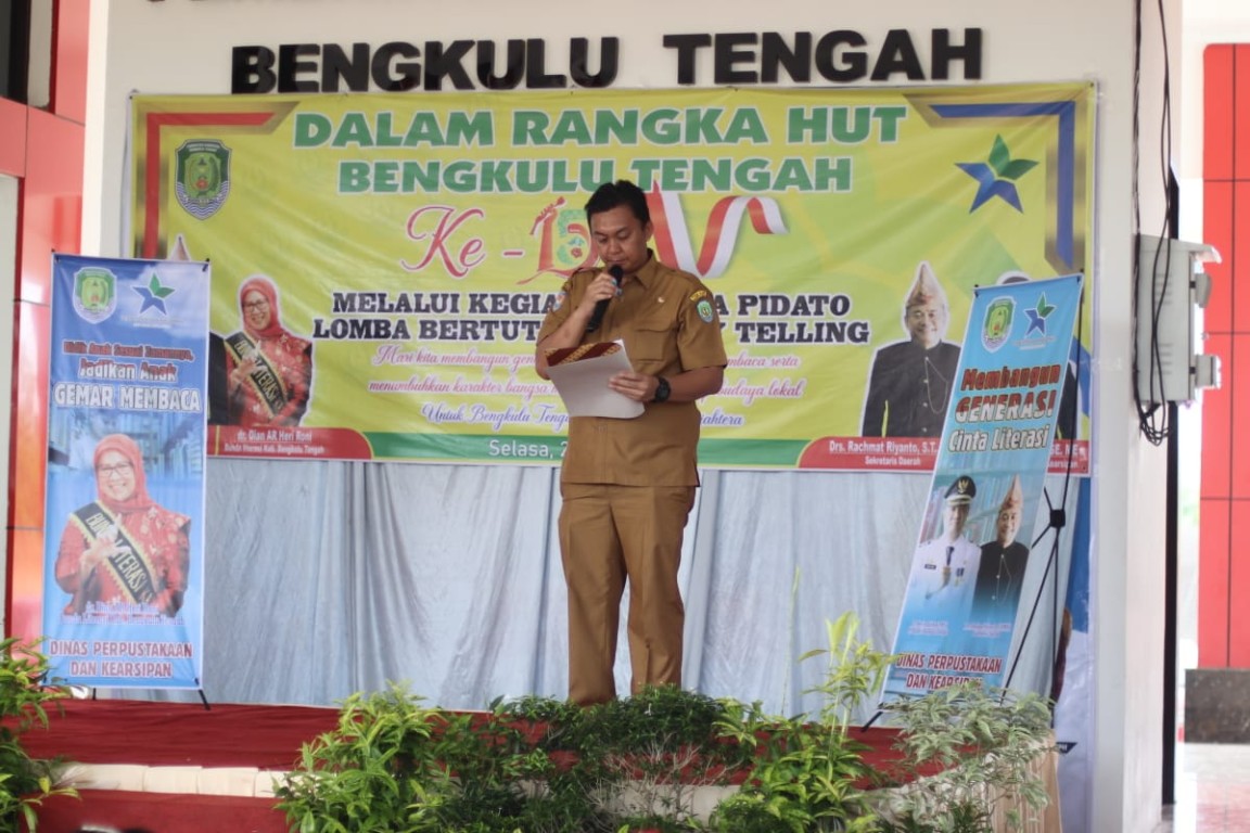 Bengkulu Tengah – Masih dalam rangkaian memeriahkan HUT ke -15 Kabupaten Bengkulu Tengah Dinas Perpustakaan dan Kearsipan (Dispursip) gelar lomba pidato, lomba bertutur dan story telling tingkat pelajar di Pendopo Bukit Kandis, Selasa (20/06/2023).