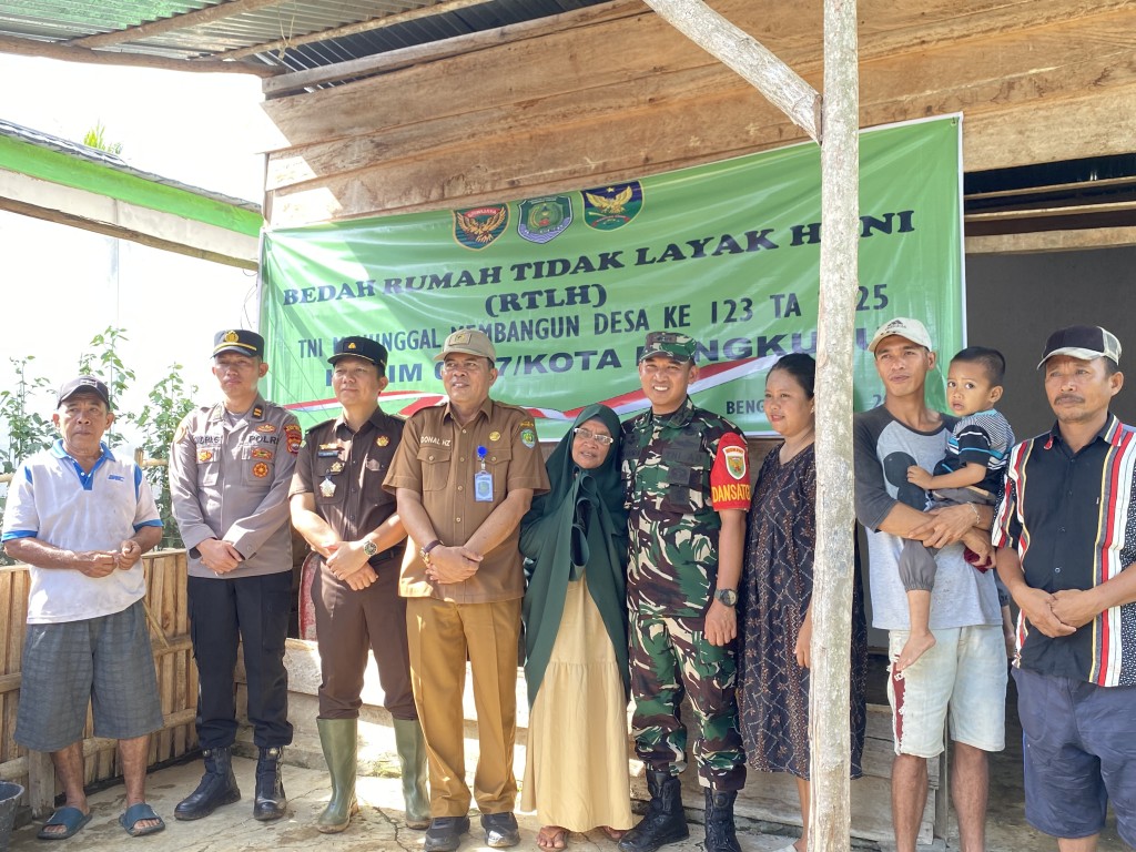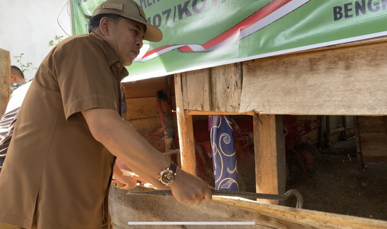 Setelah kegiatan penanaman padi gogo, Pj Sekda Bengkulu Tengah, Dandim 0407, beserta undangan lainnya melakukan bedah Rumah Tidak Layak Huni (RTLH).(MC/AA)