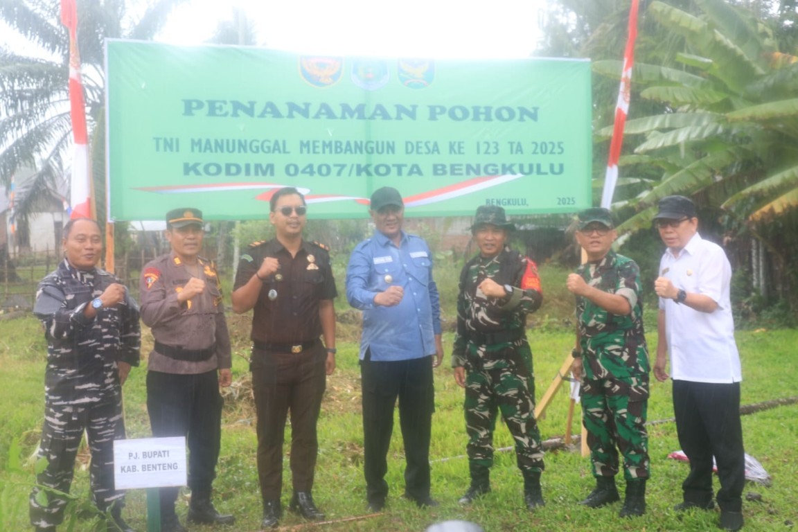 Bengkulu Tengah, MC Benteng – Pj Bupati Bengkulu Tengah Dr. Heriyandi Roni, M.Si., didampingi oleh Asisten Administrasi Umum H. Elyandes Kori, S.E., M.Si., menghadiri upacara pembukaan TMMD Reguler ke-123 yang diselenggarakan oleh Komando Resor Militer 041/Garuda Emas dan Komando Distrik Militer 0407/Kota Bengkulu di Lapangan Desa Tengah Padang Kecamatan Talang Empat Kabupaten Bengkulu Tengah, Rabu (19/02/2025).
