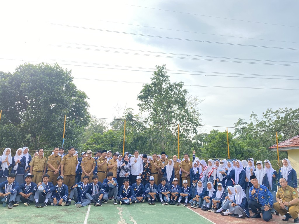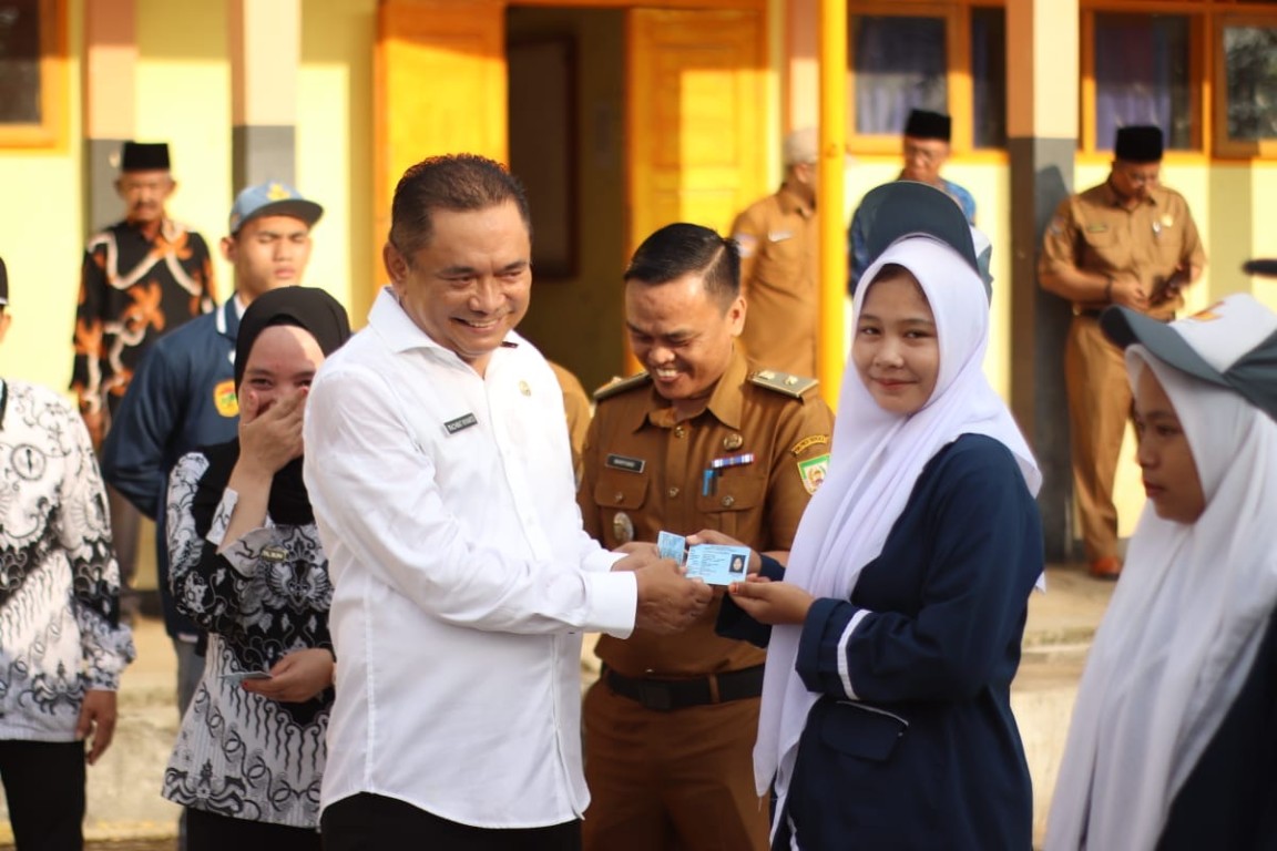 Sekretaris Daerah Bengkulu Tengah Drs. Rachmat Riyanto, S.T.,M.AP., membagikan Kartu Tanda Penduduk (KTP) Kepada siswa/siswi yang sudah berumur 17 tahun.