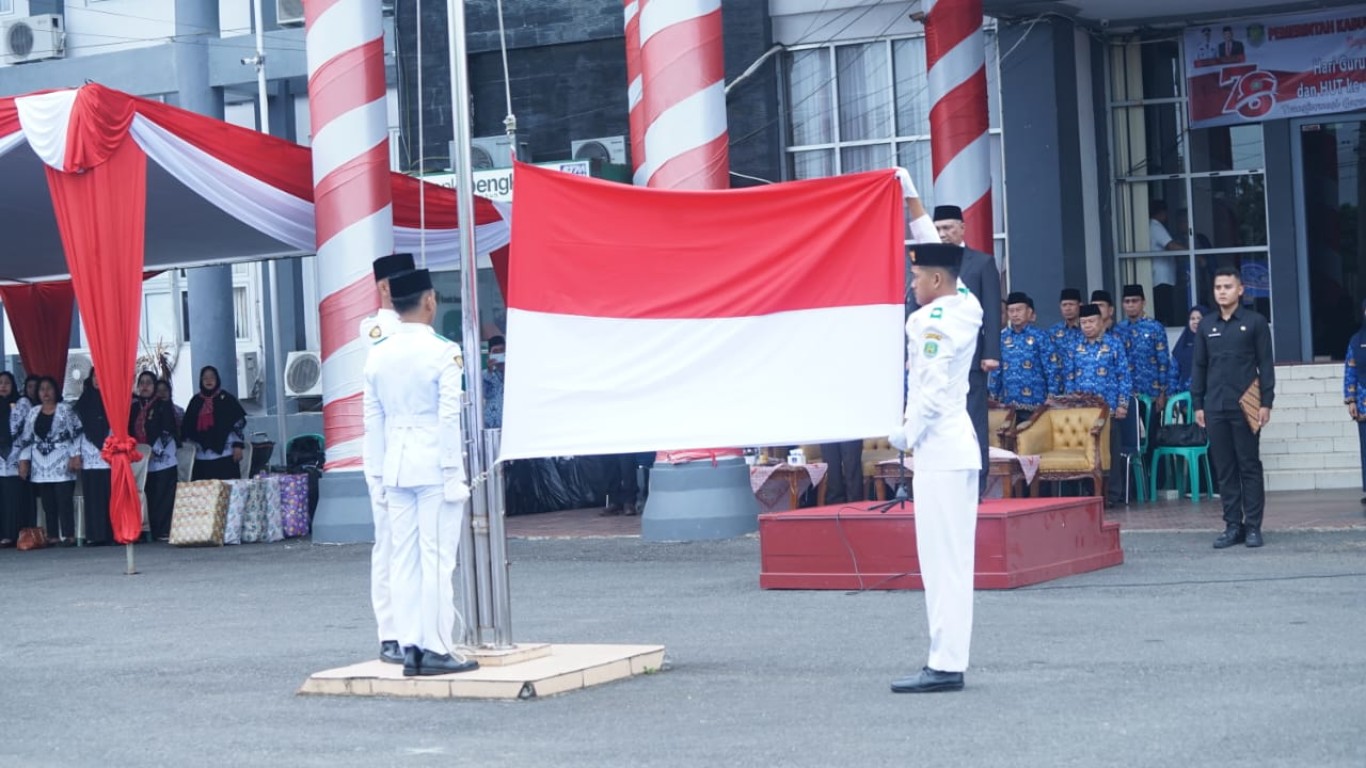 Bengkulu Tengah, MC Benteng - Pemerintah Kabupaten Bengkulu Tengah melaksanakan upacara dalam peringatan Hari Guru Nasional (HGN), Hari jadi Provinsi Bengkulu ke-55, Hari Ulang Tahun (HUT) Korpri dan Persatuan Guru Republik Indonesia (PGRI) tingkat Kabupaten ke-78 di Bengkulu Tengah yang berlangsung di Halaman Kantor Bupati. Senin pagi (20/11/2023)