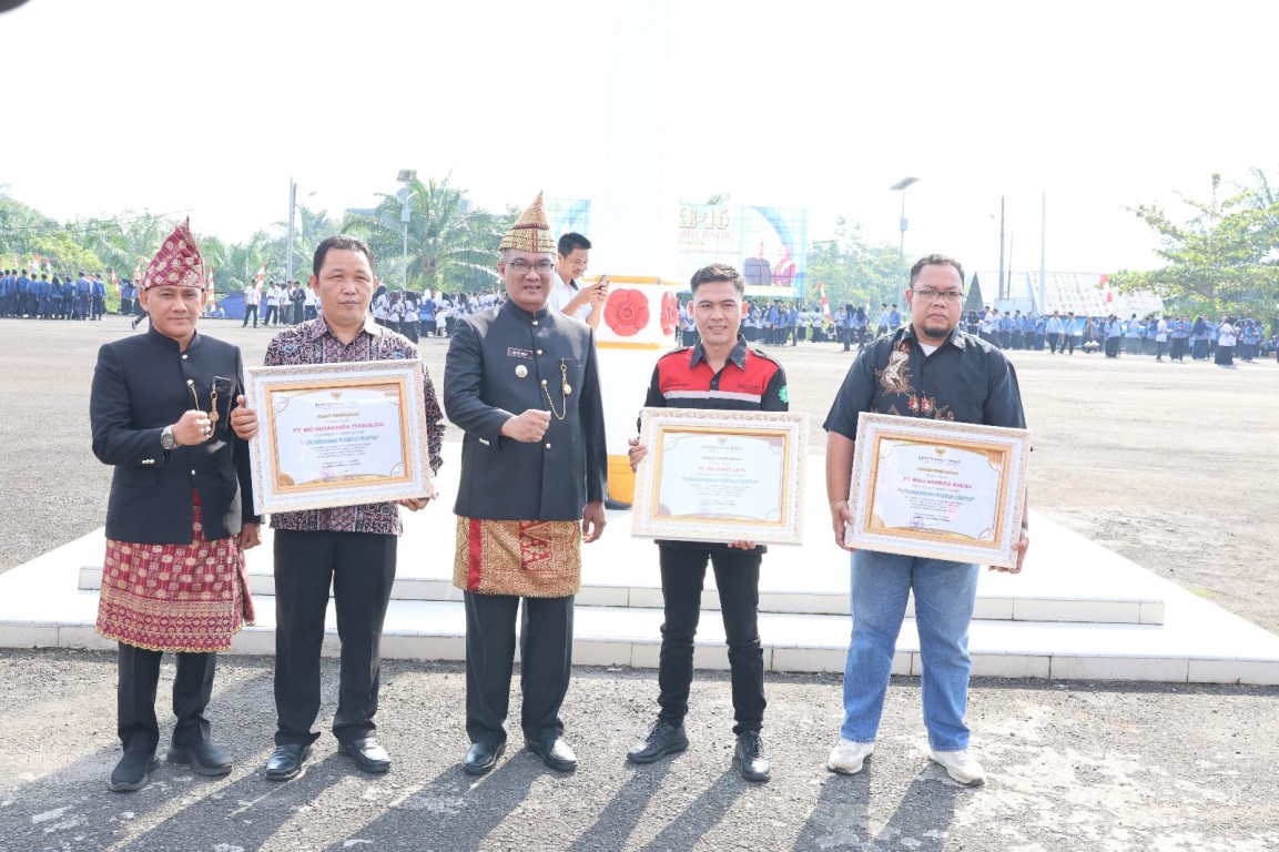 Diakhir upacara PJ Bupati Heri Roni menyerahkan penghargaan kepada 3 Perusahaan yang sudah berjasa bagi Kabupaten Bengkulu Tengah.
