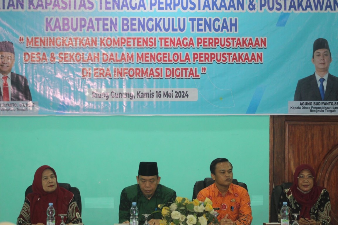 Bengkulu Tengah, MC Benteng - Pemerintah Kabupaten Bengkulu Tengah melalui Dinas Perpustakaan dan Kearsipan Kabupaten Bengkulu Tengah menyelenggarakan kegiatan Peningkatan Kapasitas Tenaga Perpustakaan dan Pustakawan Kabupaten Bengkulu Tengah Tahun 2024. Kegiatan diselenggarakan di Aula Riung Gunung Bengkulu Tengah, Kamis (16/05/2024).