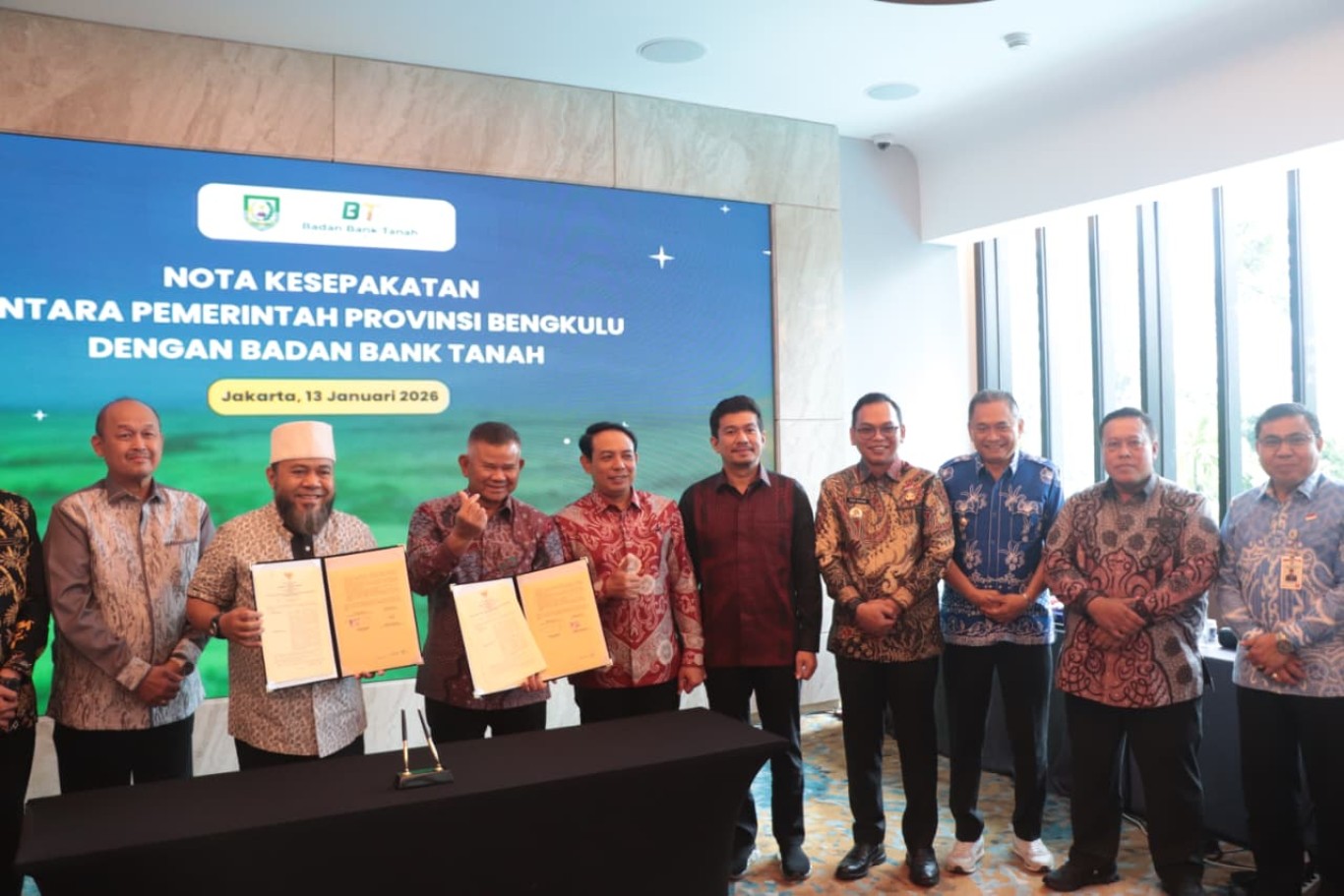 BUPATI HADIRI PENANDATANGANAN MoU PROVINSI BENGKULU DENGAN BANK TANAH