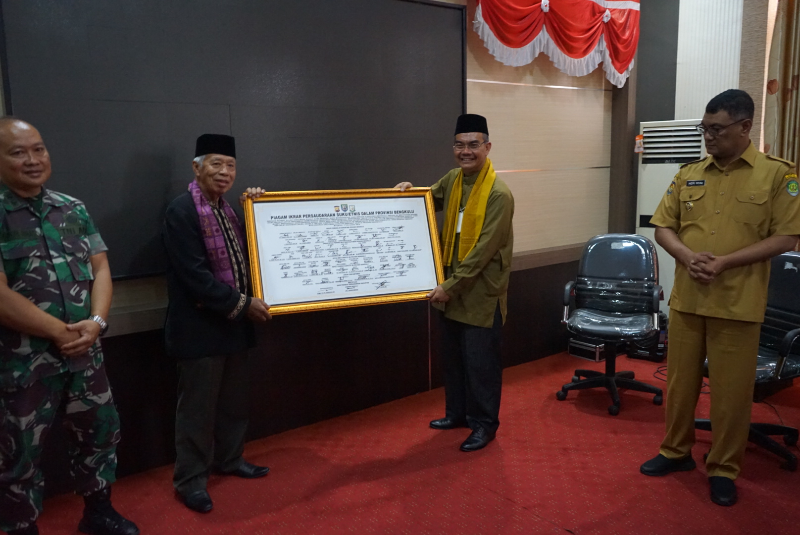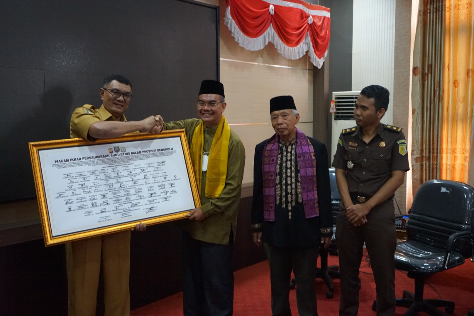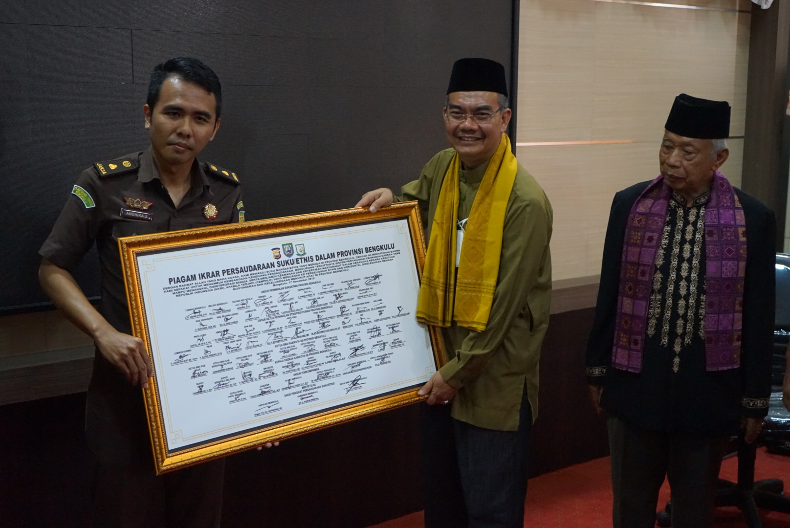 PEMDA BENGKULU TENGAH MENERIMA PENYERAHAN IKRAR PERSAUDARAAN SUKU/ETNIS DALAM PROVINSI BENGKULU