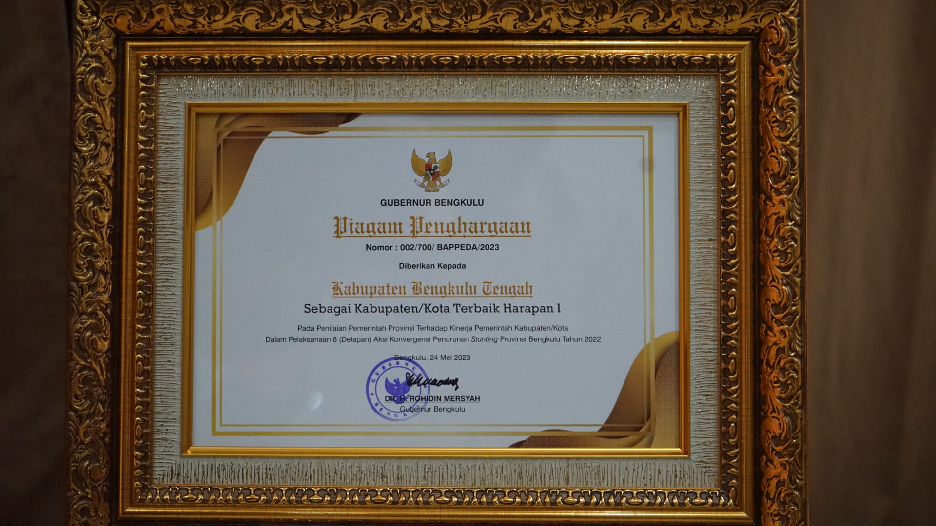 PEMKAB BENGKULU TENGAH RAIH PERINGKAT TERBAIK HARAPAN 1 PADA PENILAIAN 8 AKSI KORVERGENSI PERCEPATAN
