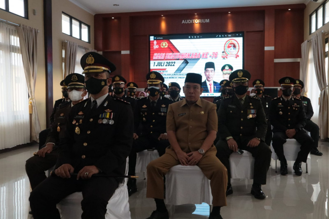 PEMKAB BENTENG MENGIKUTI UPACARA PERINGATAN HUT BHAYANGKARA KE 76 MELALUI ZOOM MEETING