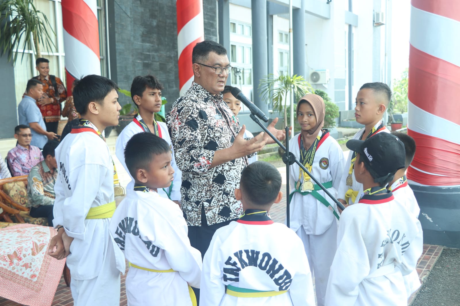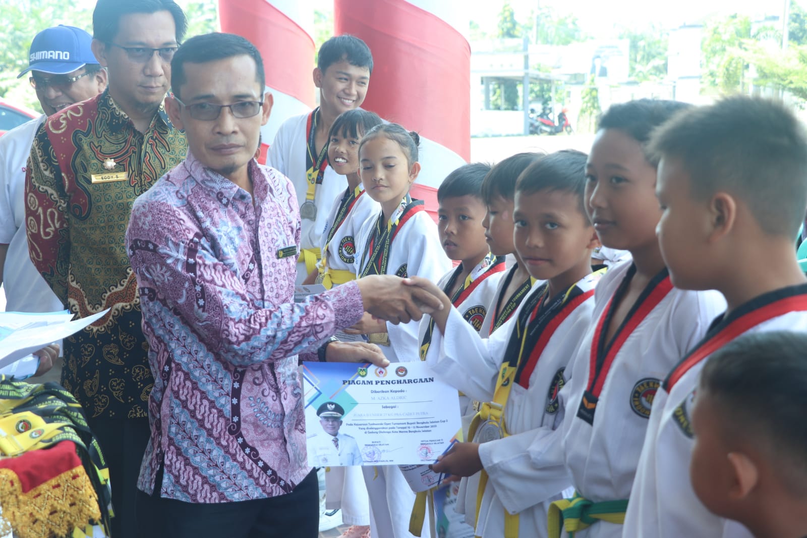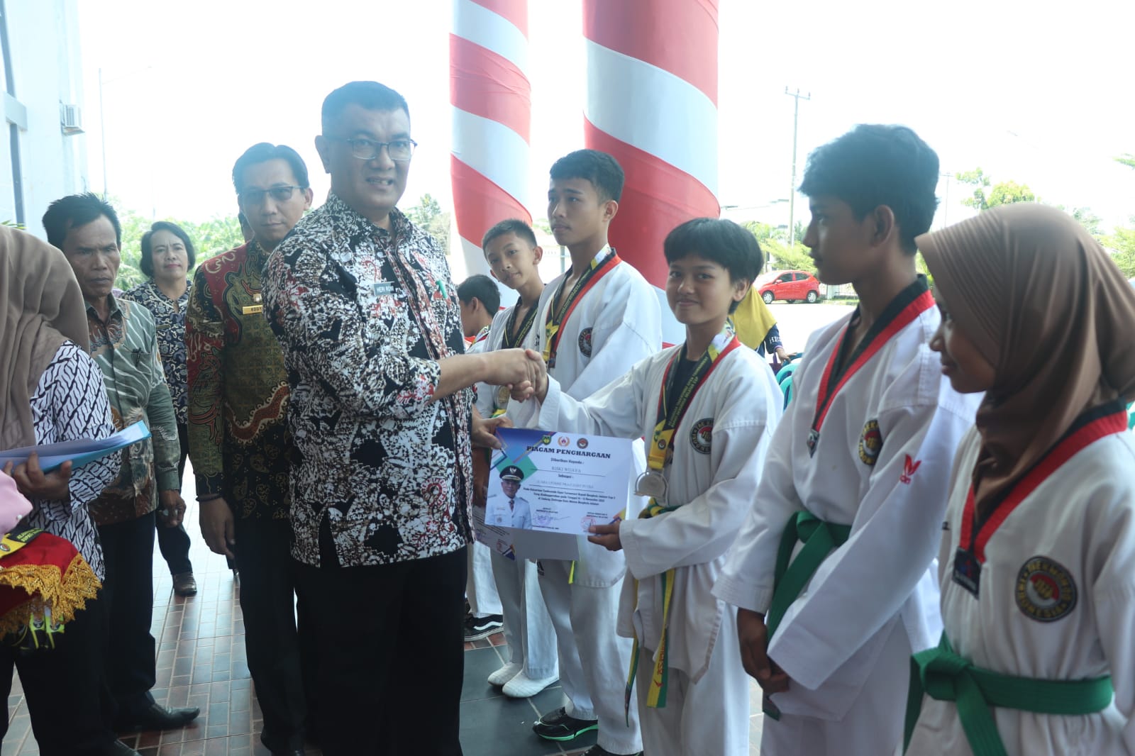 PENYERAHAN MEDALI DAN PIAGAM ATAS PRESTASI ATLET TAEKWONDO PADA TURNAMEN BUPATI BS CUP II TAHUN 2023