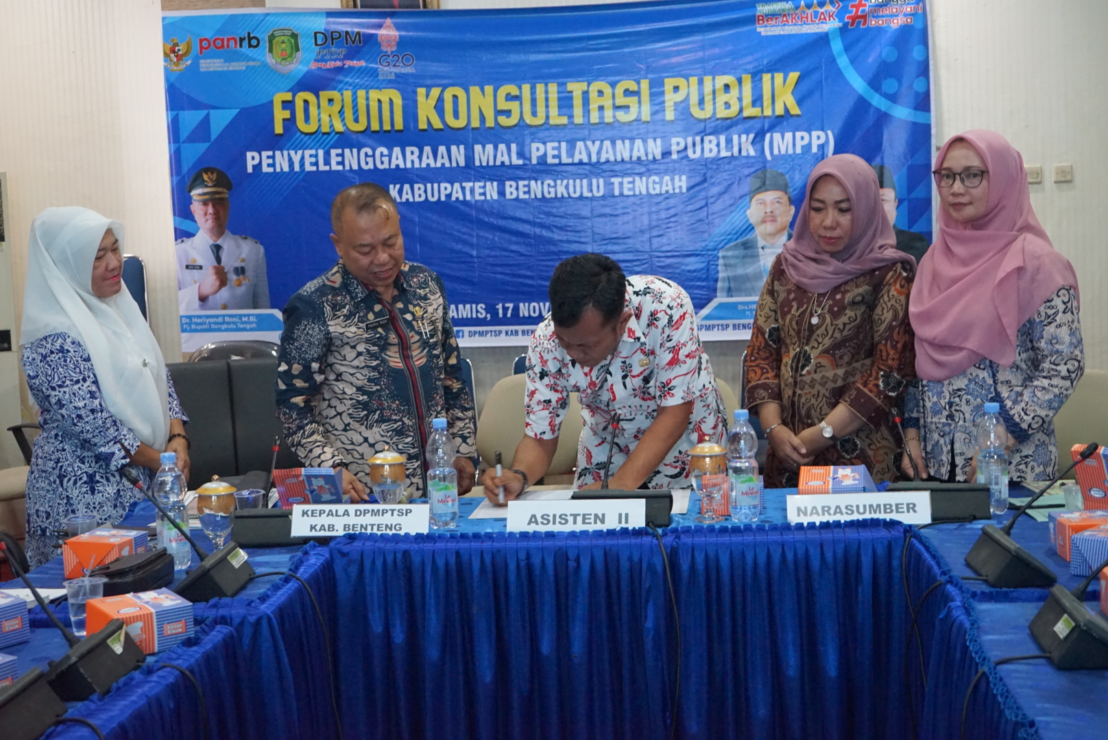 | PJ. BUPATI MEMBUKA KEGIATAN FKP PENYELENGGARAAN MPP BENGKULU TENGAH